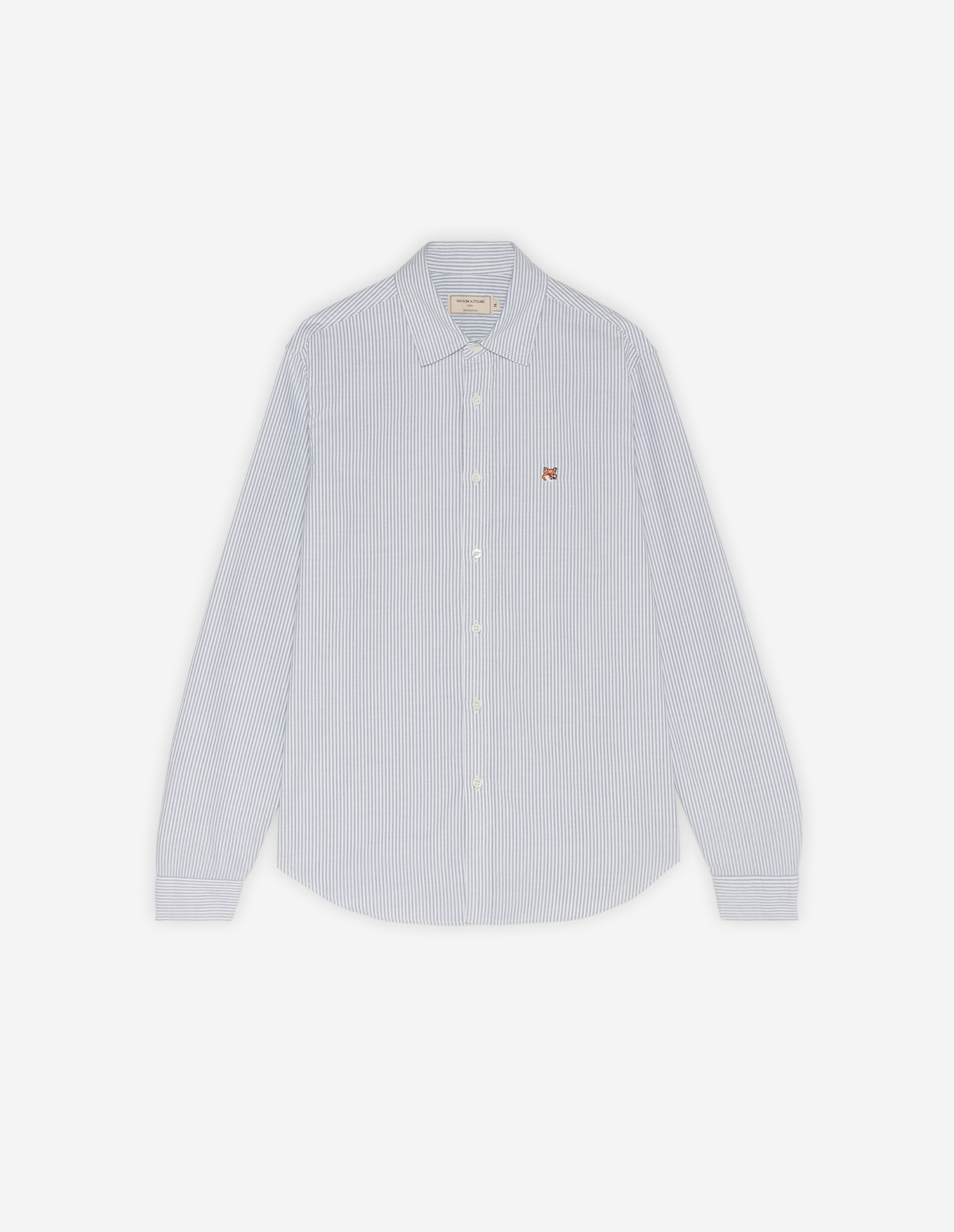 Striped Oxford cotton shirt. Relaxed fit with Tonal Fox embroidered on the breast.