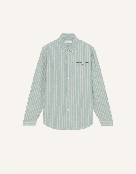 Striped Oxford Shirt. Relaxed fit with “MAISON KITSUNÉ PARIS” embroidery on the chest.