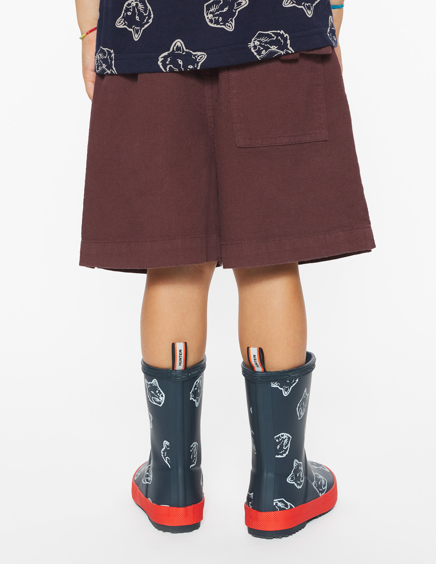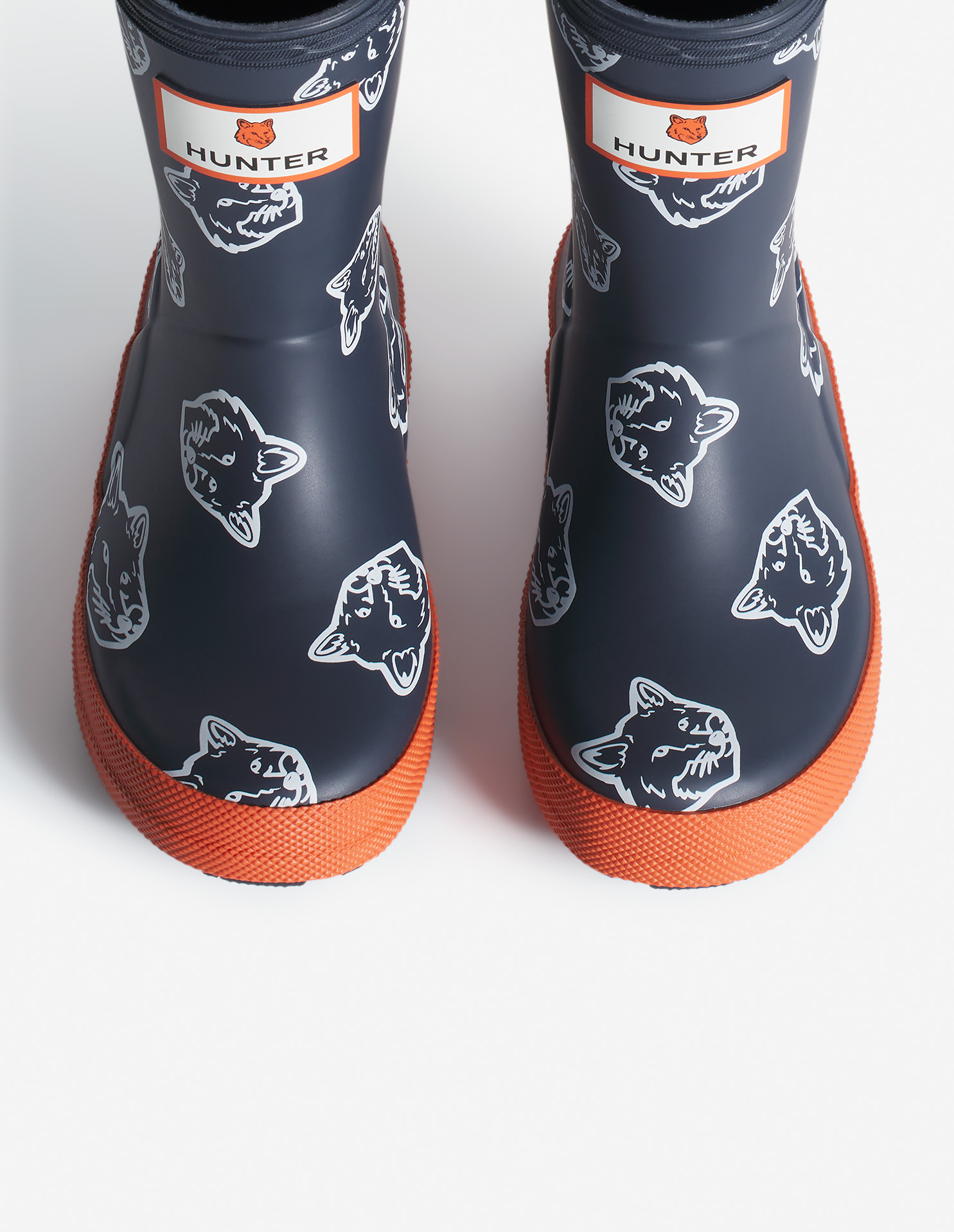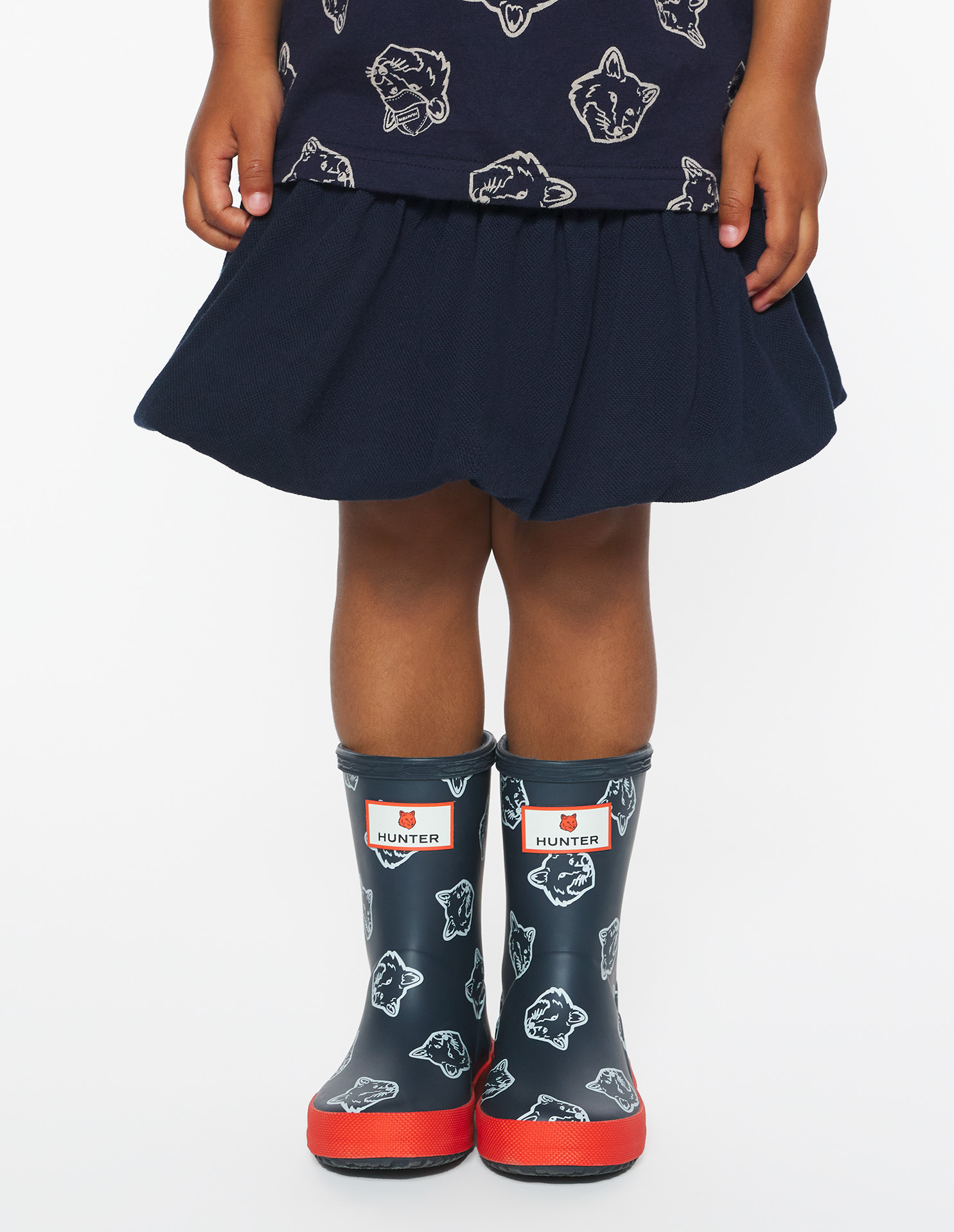 Waterproof rubber boots for kids with Fox Head print all-over. Maison Kitsuné x Hunter collaboration.
