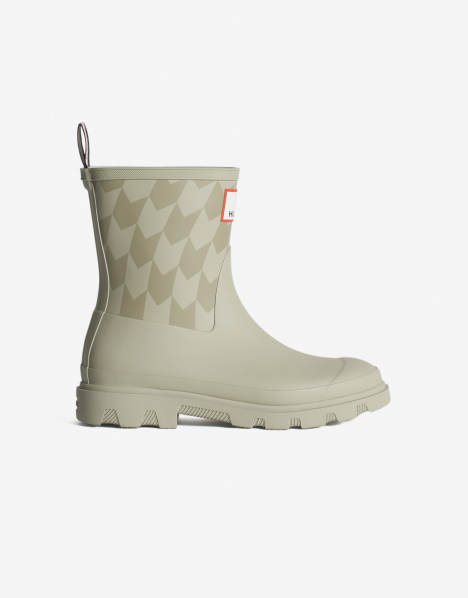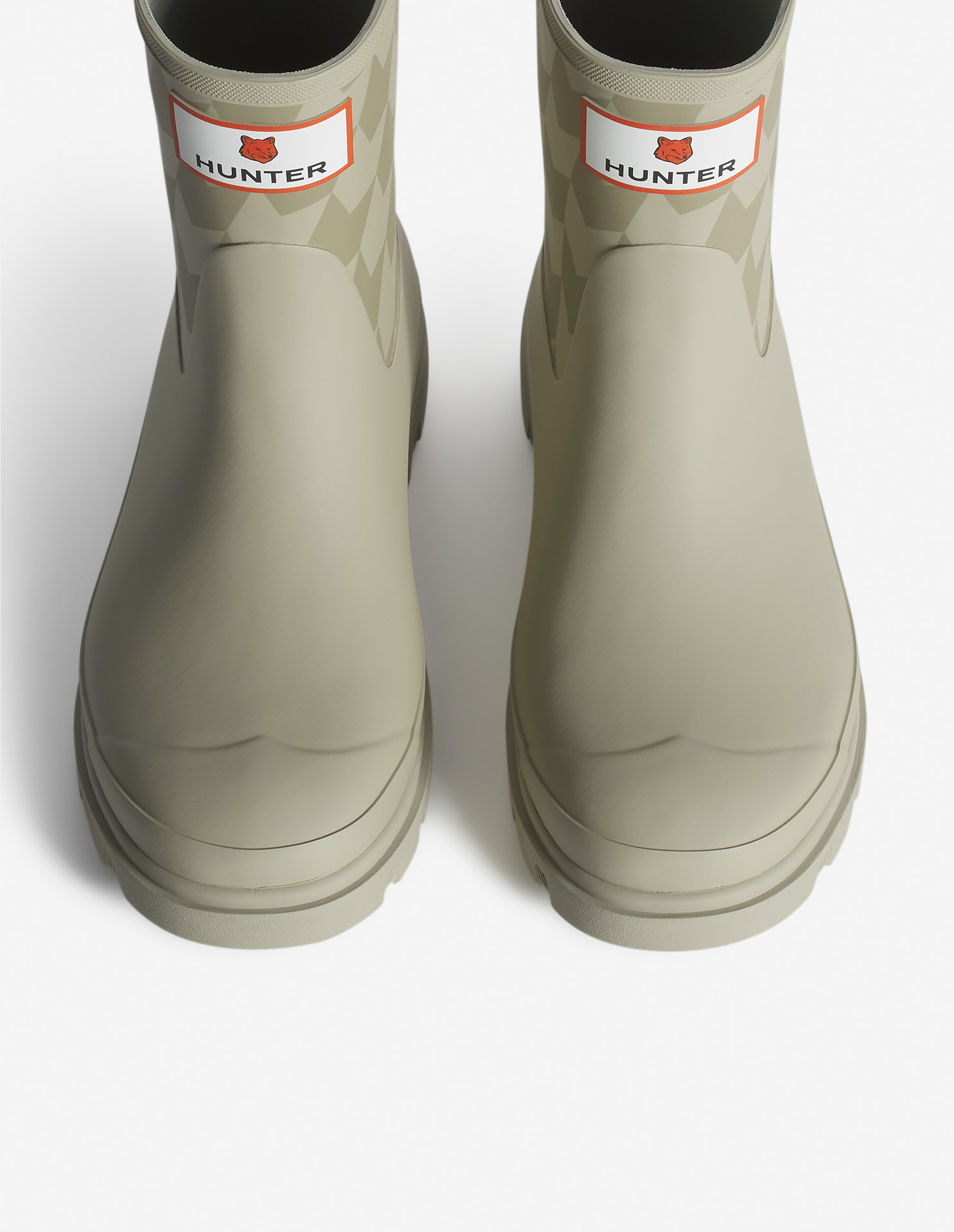 Downpoor short boots in waterproof rubber with chevron print. Maison Kitsuné x Hunter collaboration.