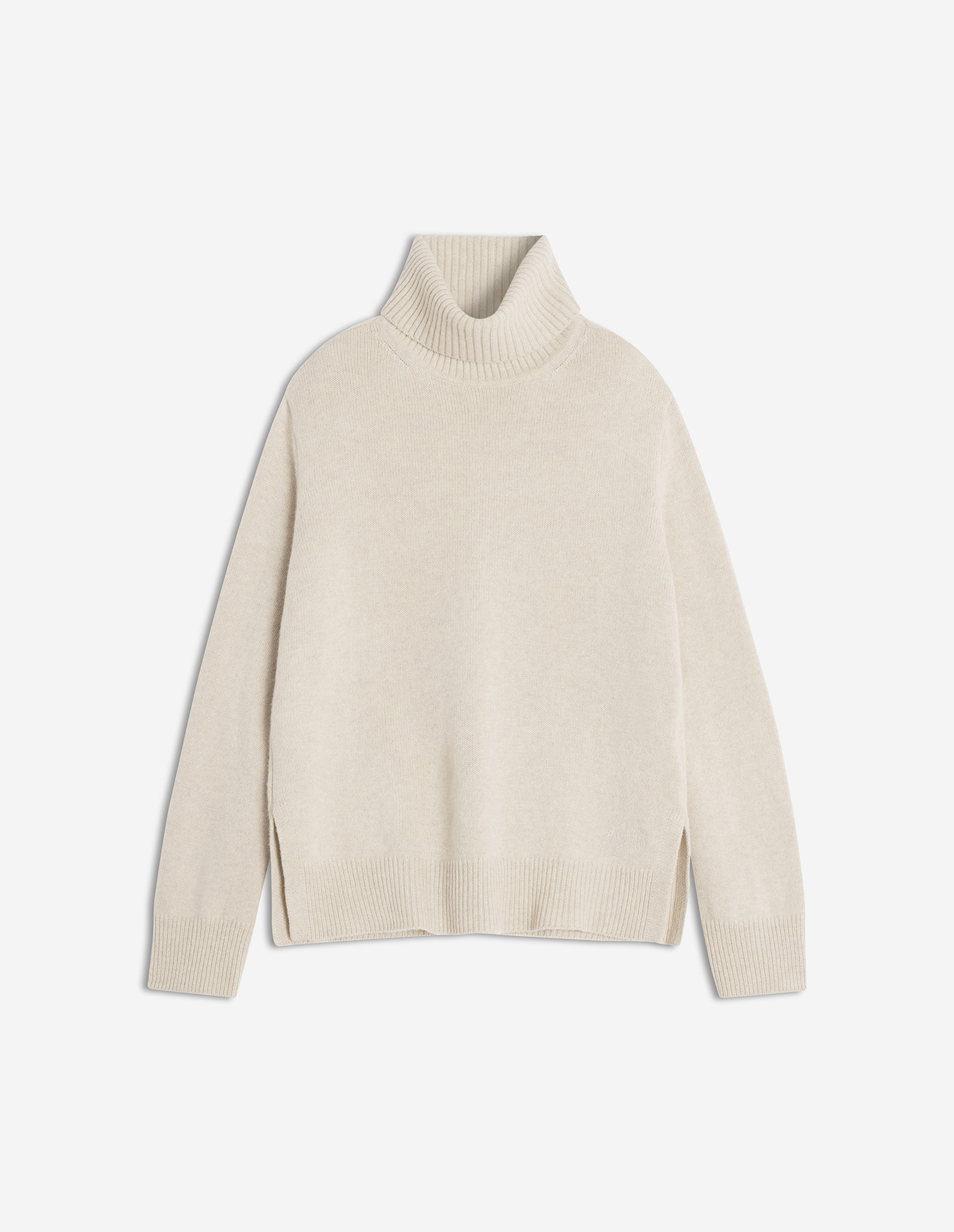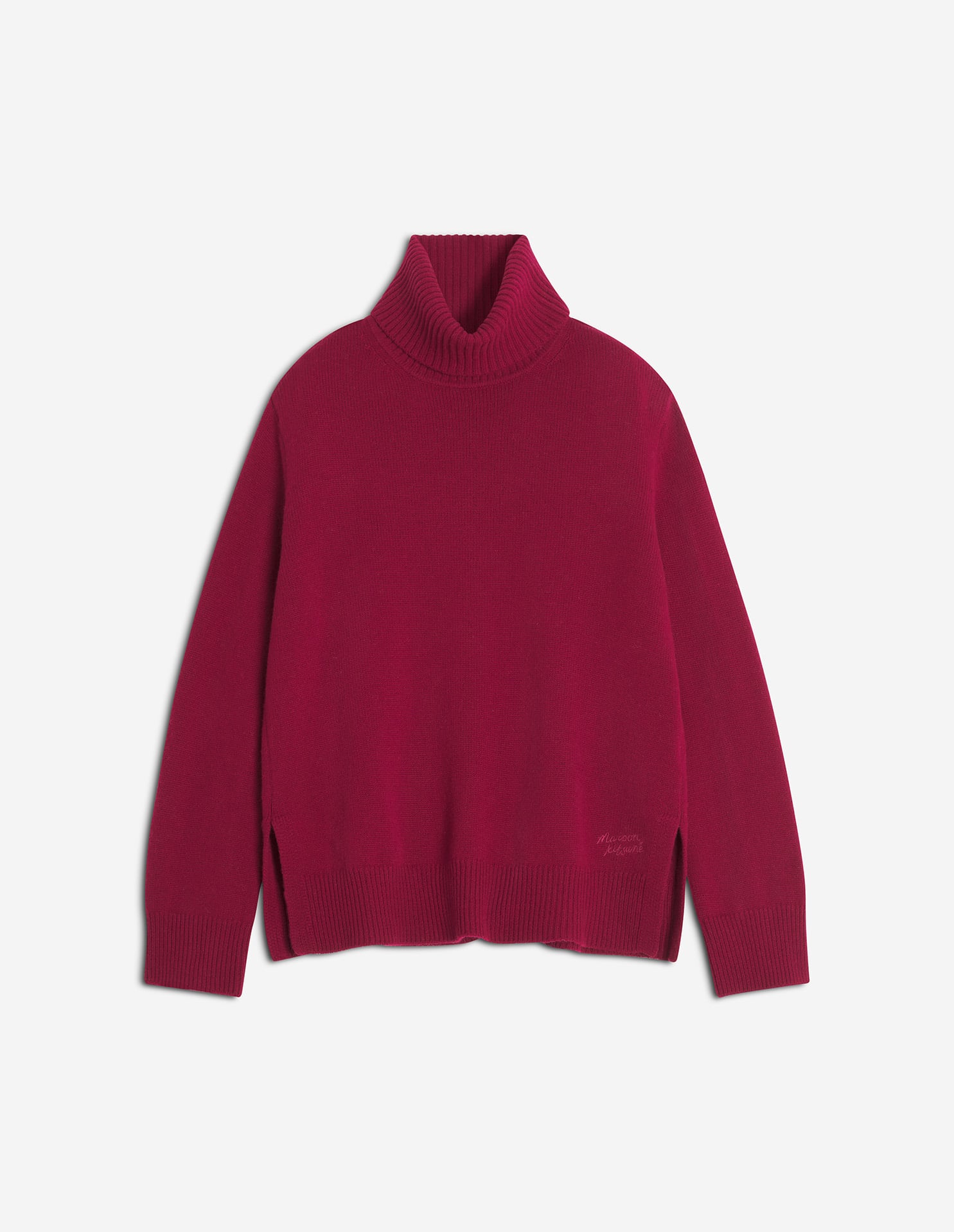 Thick merino wool turtleneck jumper. Embroidered Maison Kitsuné Handwriting signature.