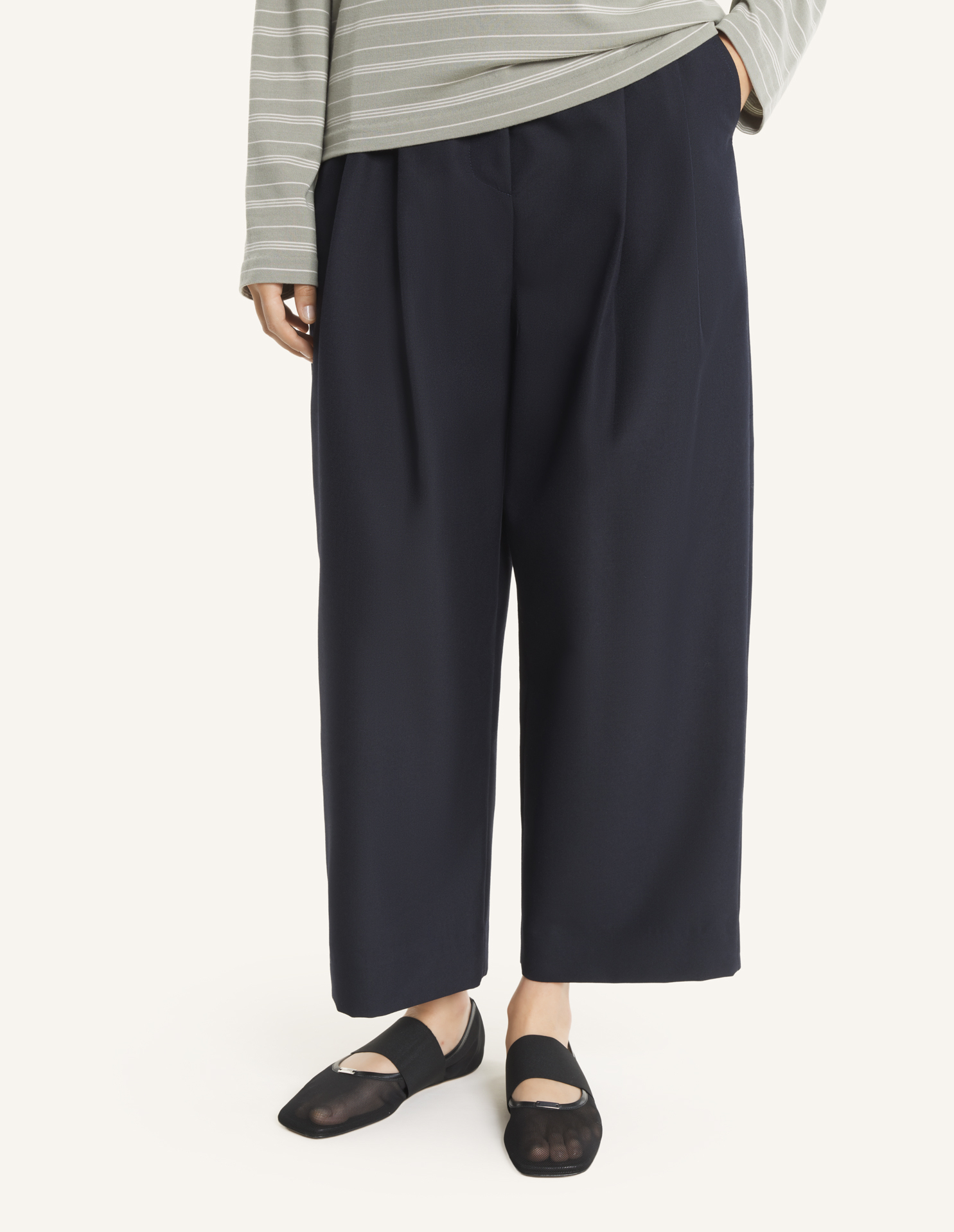 • 가벼운 울 혼방 소재의 캐롯 플리츠 팬츠