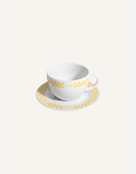 CHECKERBOARD PORCELAIN COFFEE CUP AND SAUCER
