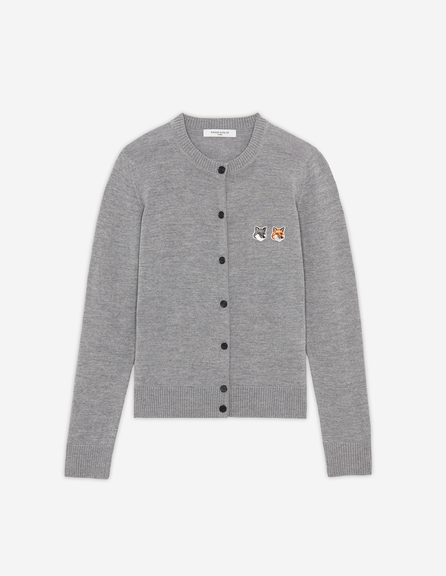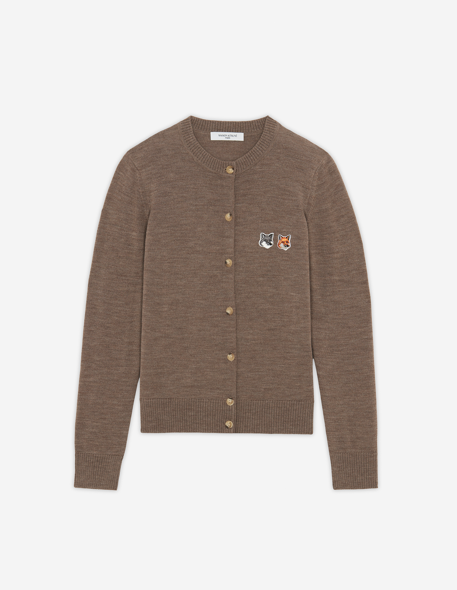 • 울 크루넥 가디건. 핏티드로 가슴 부분에 더블 폭스헤드 패치.