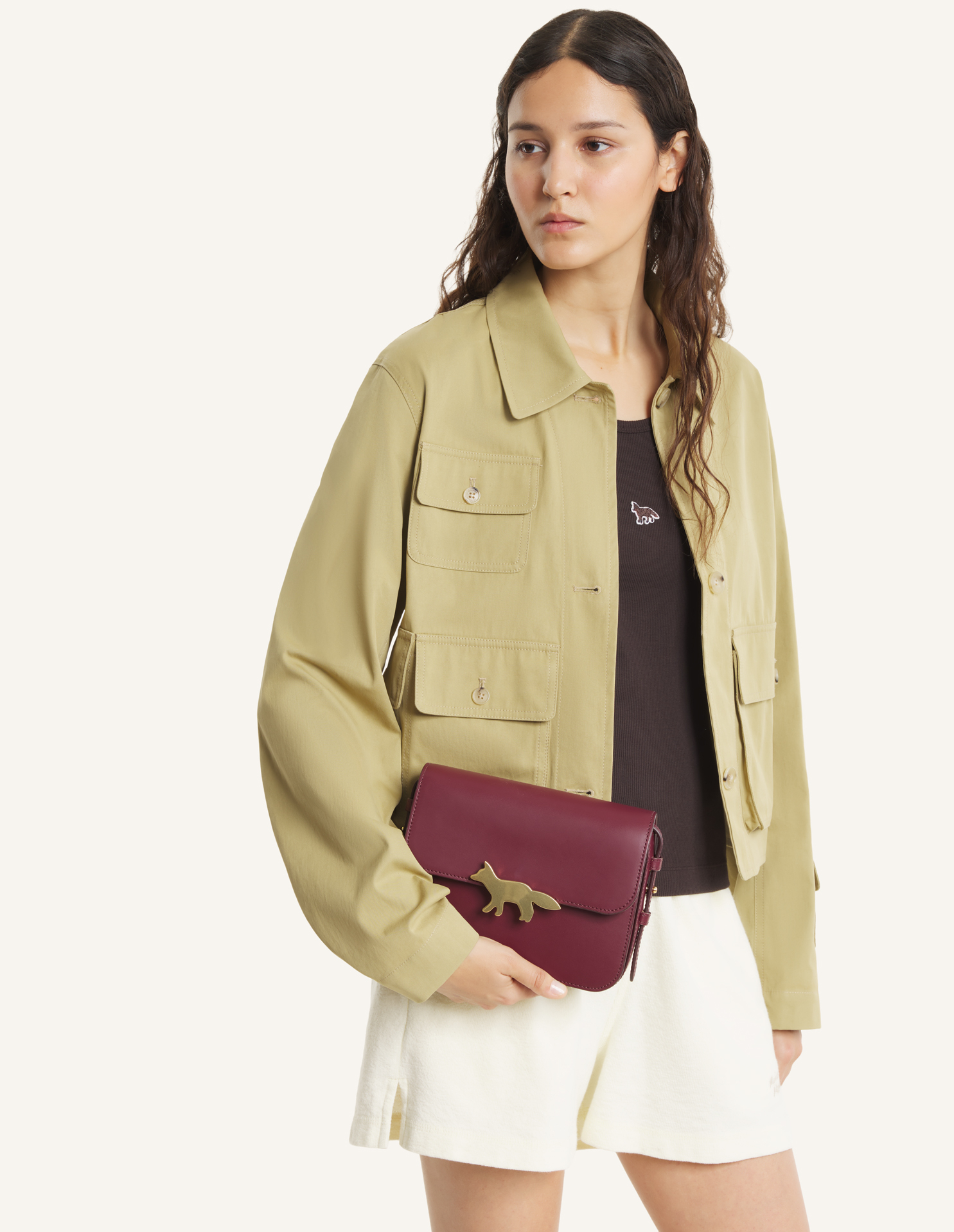 부드러운 가죽과 매트하게 마감된 Edie 백, 골드 톤 프로파일 폭스 잠금장치, 길이 조절 가능한 스트랩.