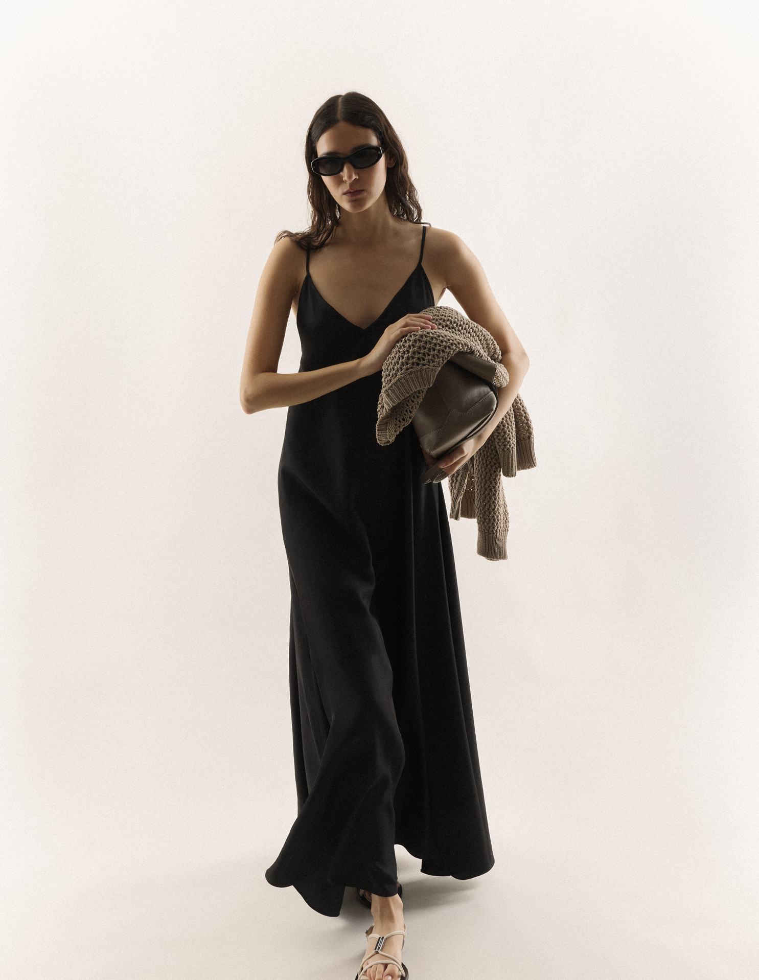 재패니즈 플루이드 트윌 소재의 롱 드레스.