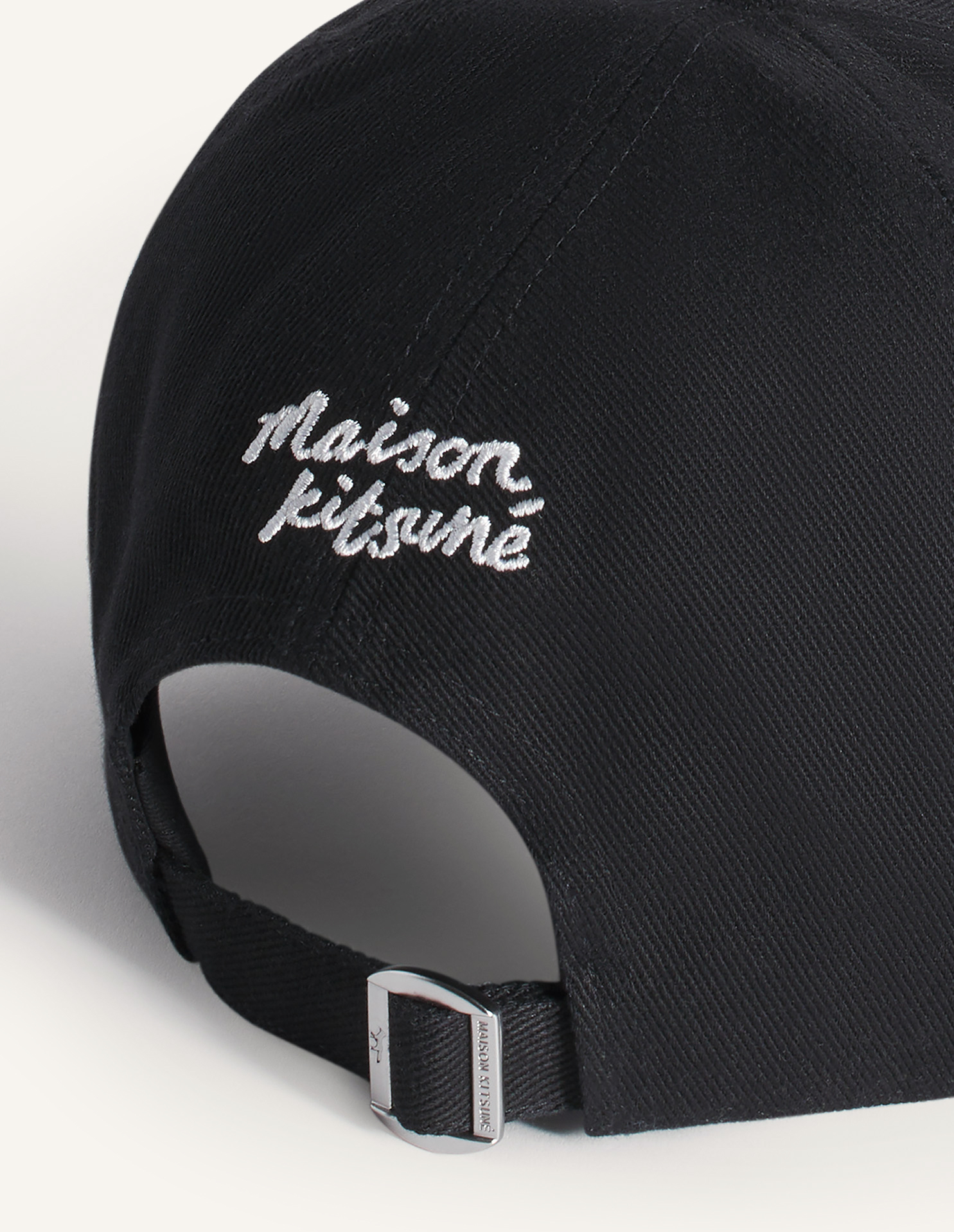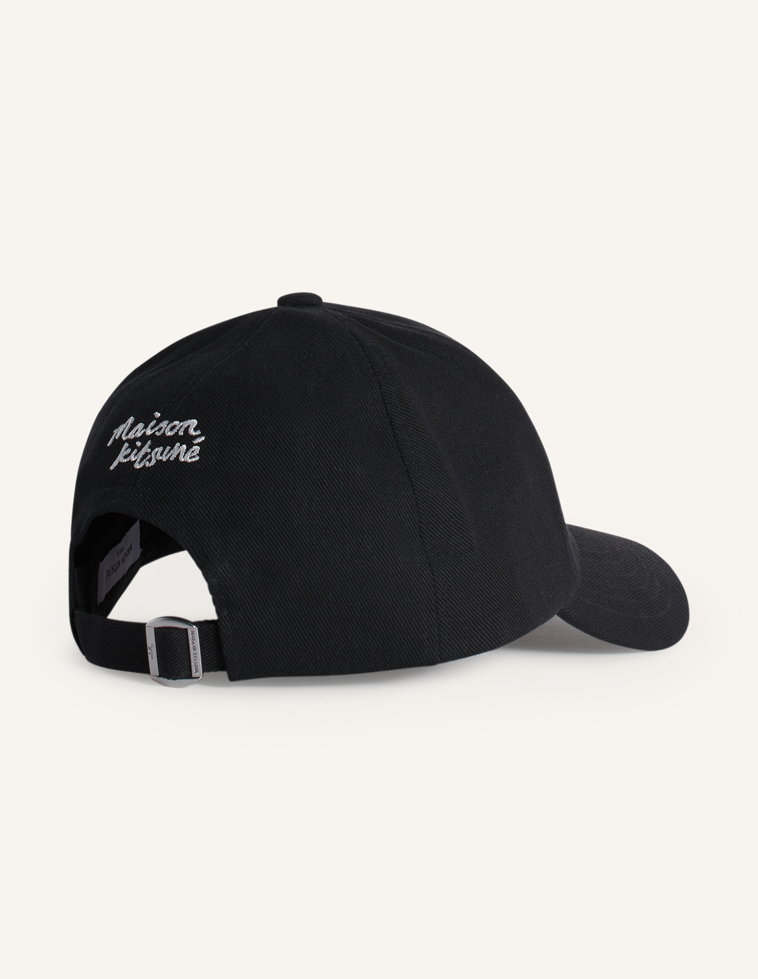 뒷면에 메종키츠네와 프로파일 폭스가 새겨진 사이즈 조절이 가능한 메탈 버클