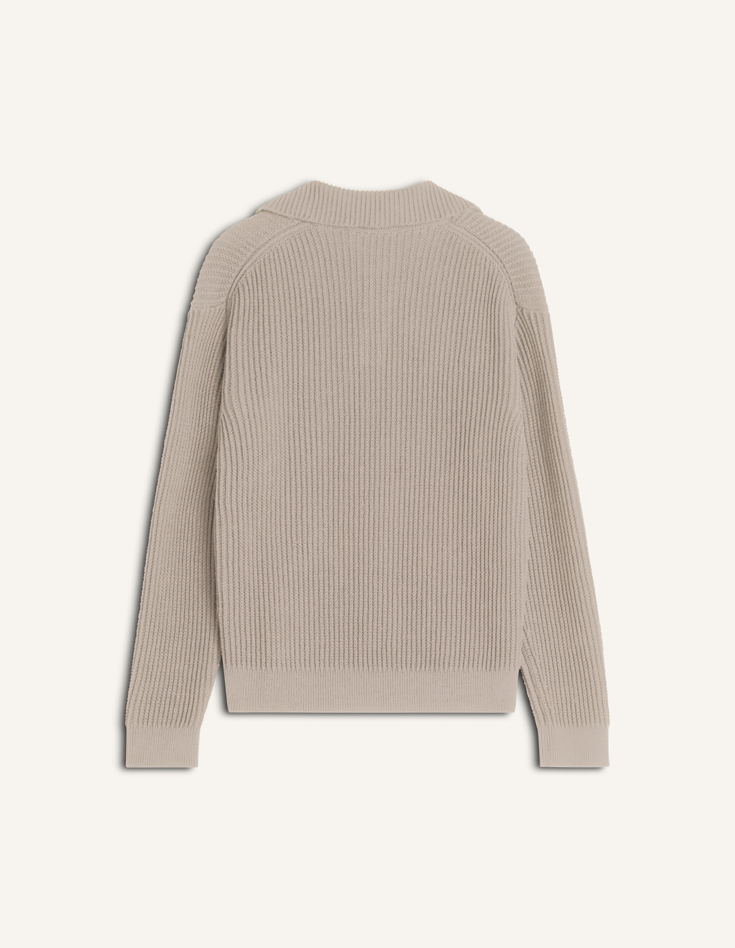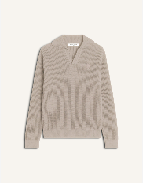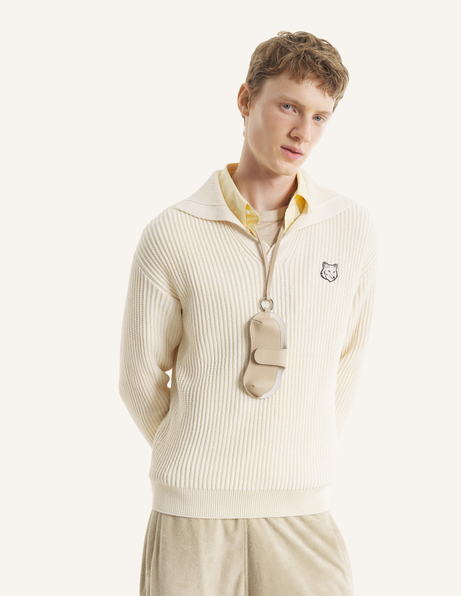 골지 면 폴로 스웨터. 가슴 부분에 토날 폭스헤드 자수 패치가 더해진 컴포트 핏입니다.