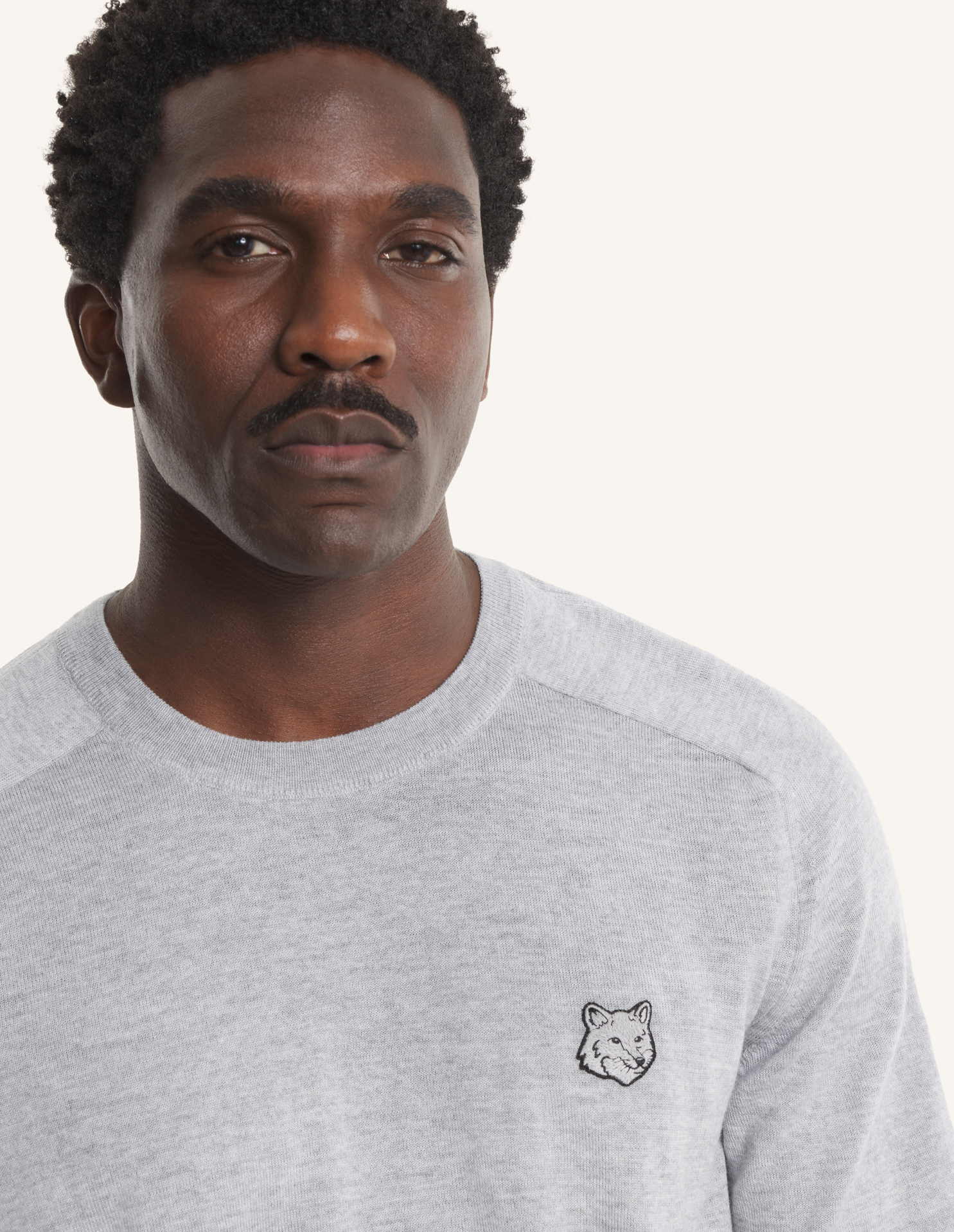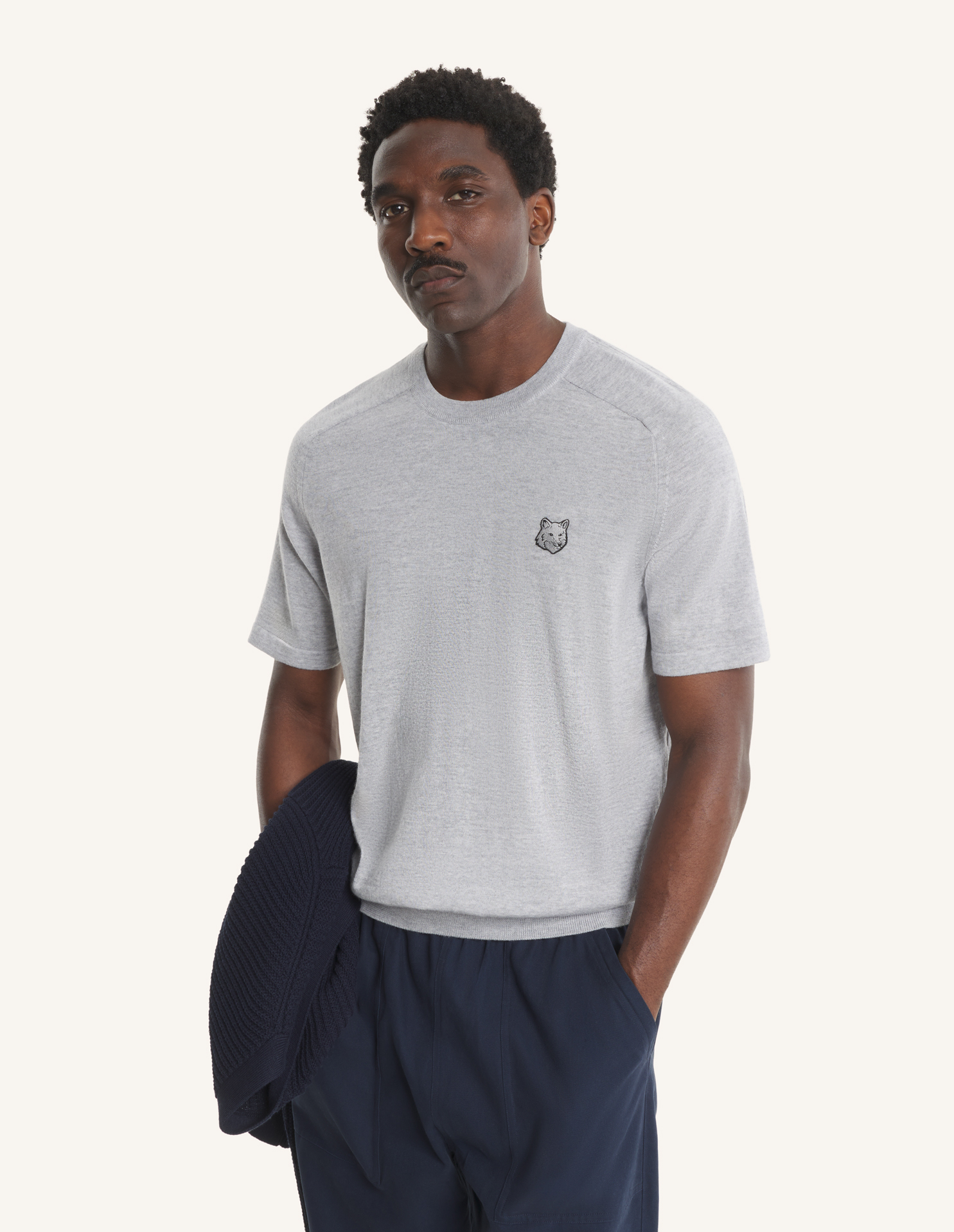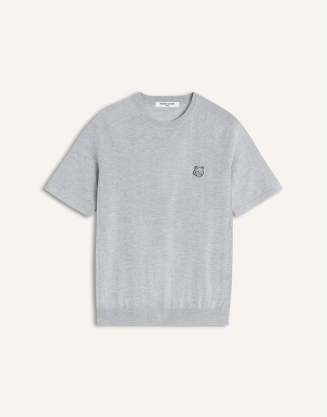 파인 메리노 울 소재의 반팔 스웨터. 가슴 부분에 토날 폭스헤드 자수 패치가 장식된 릴랙스 핏입니다.