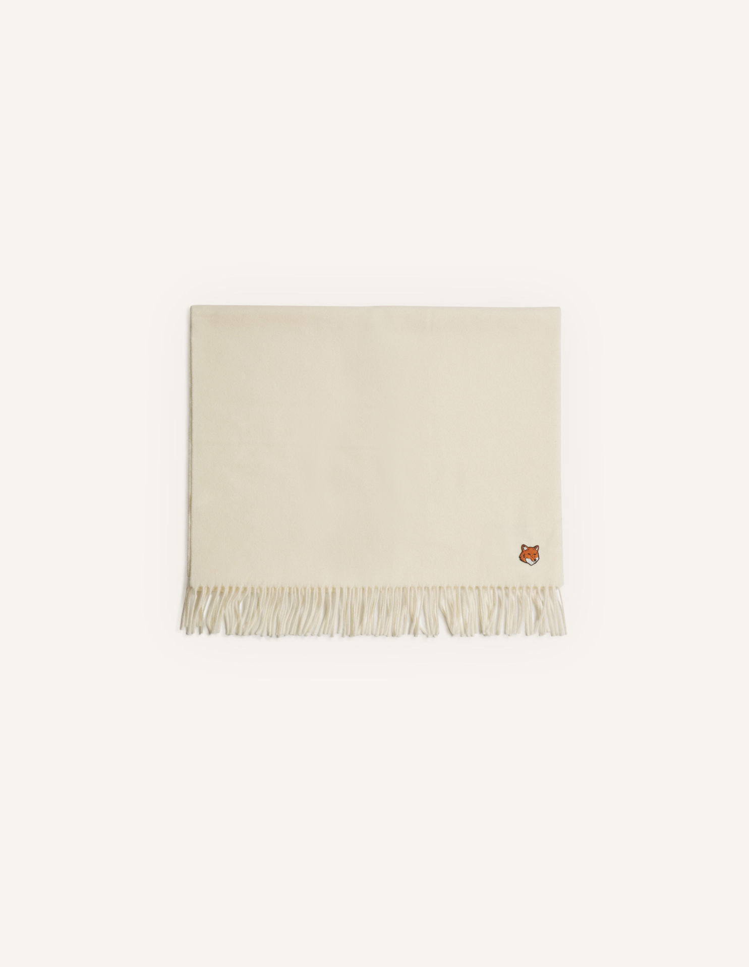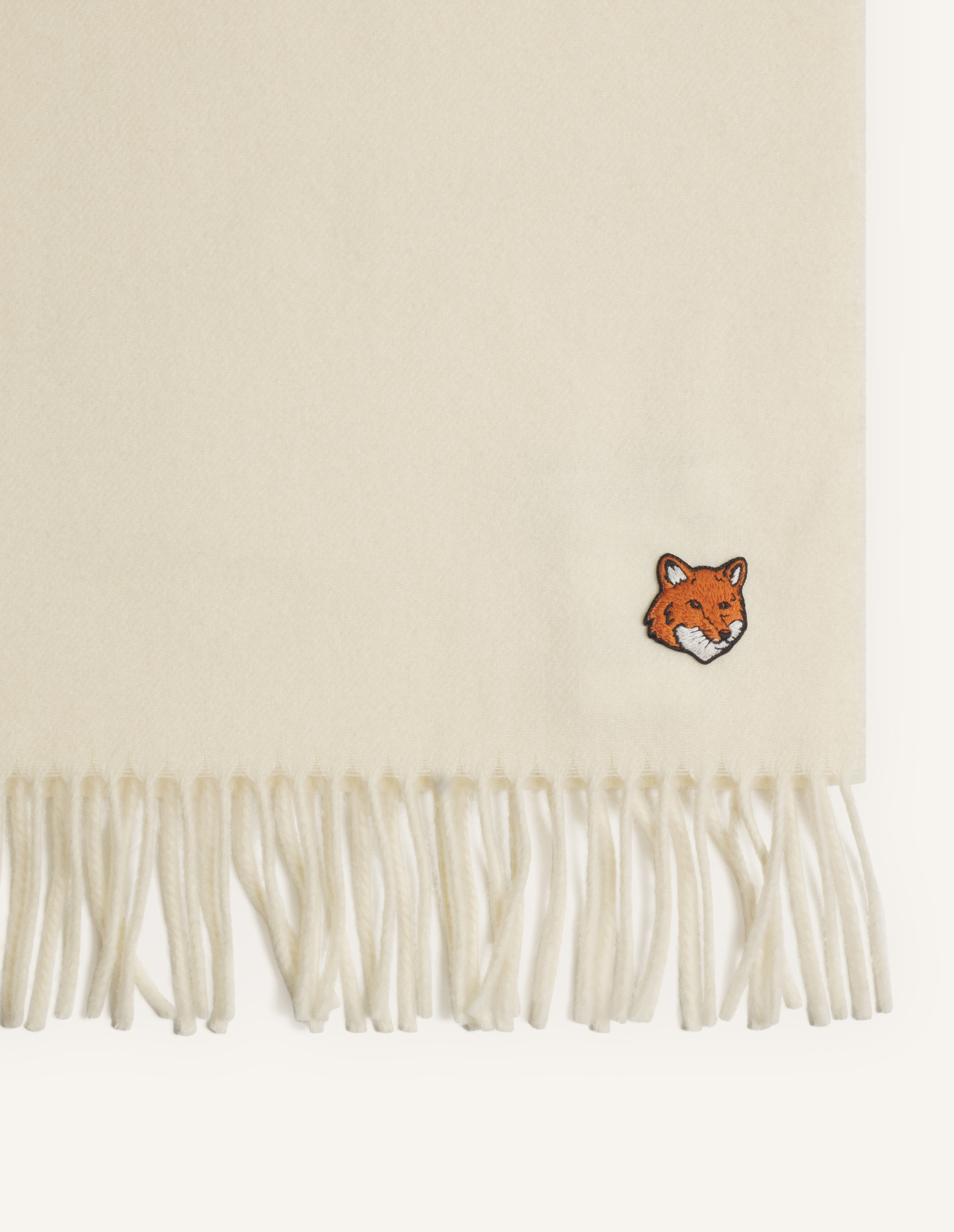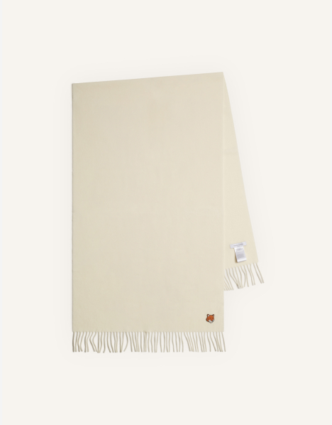 버진 울 소재의 스카프. 가장자리에 폭스헤드 패치가 자수되어 있습니다.
