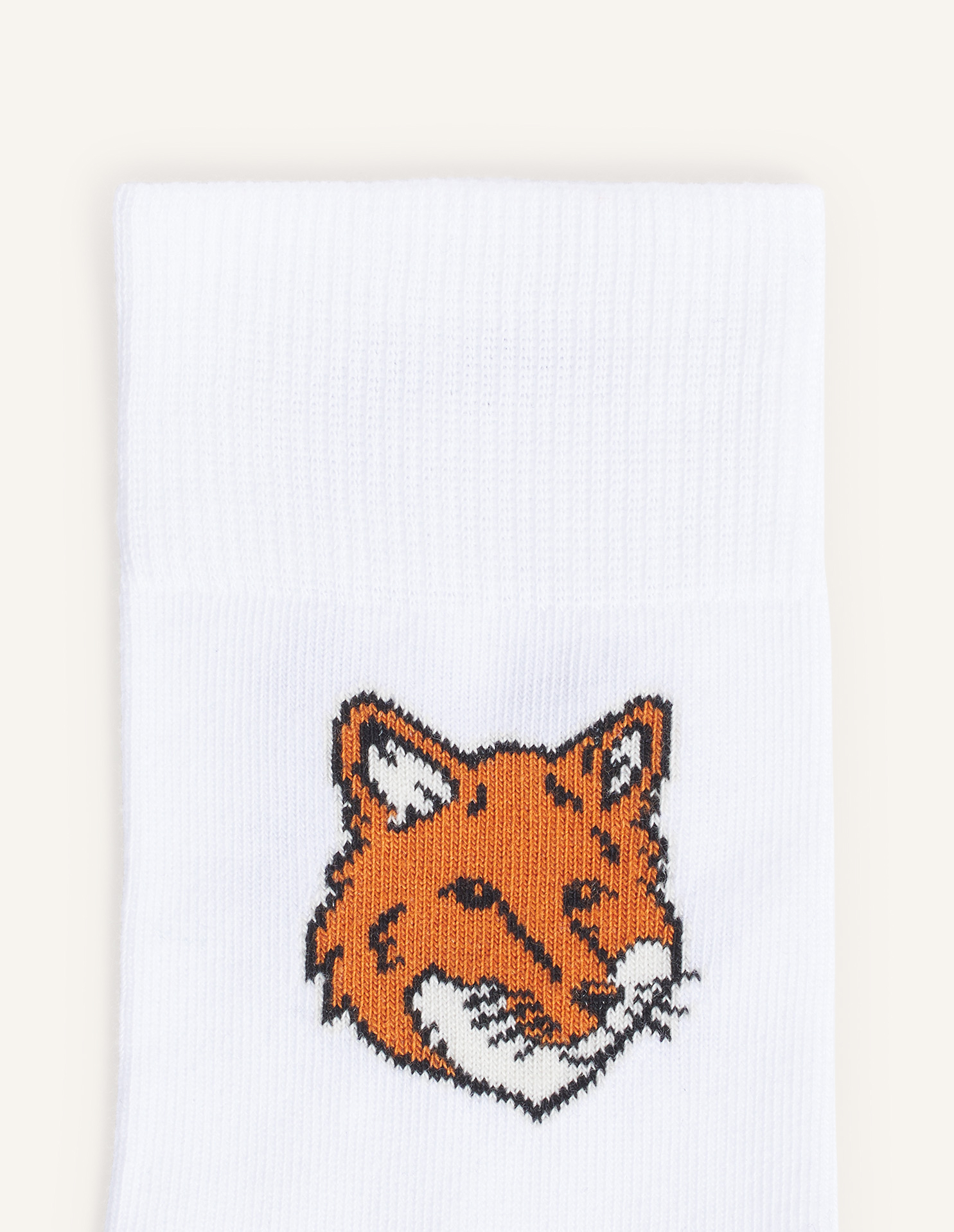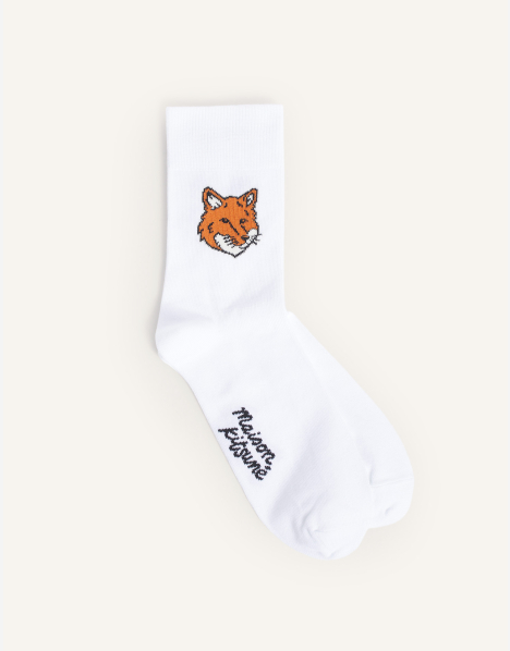 코튼 멜란지 양말. 옆면에 폭스헤드 패치가 자수되어 있습니다.