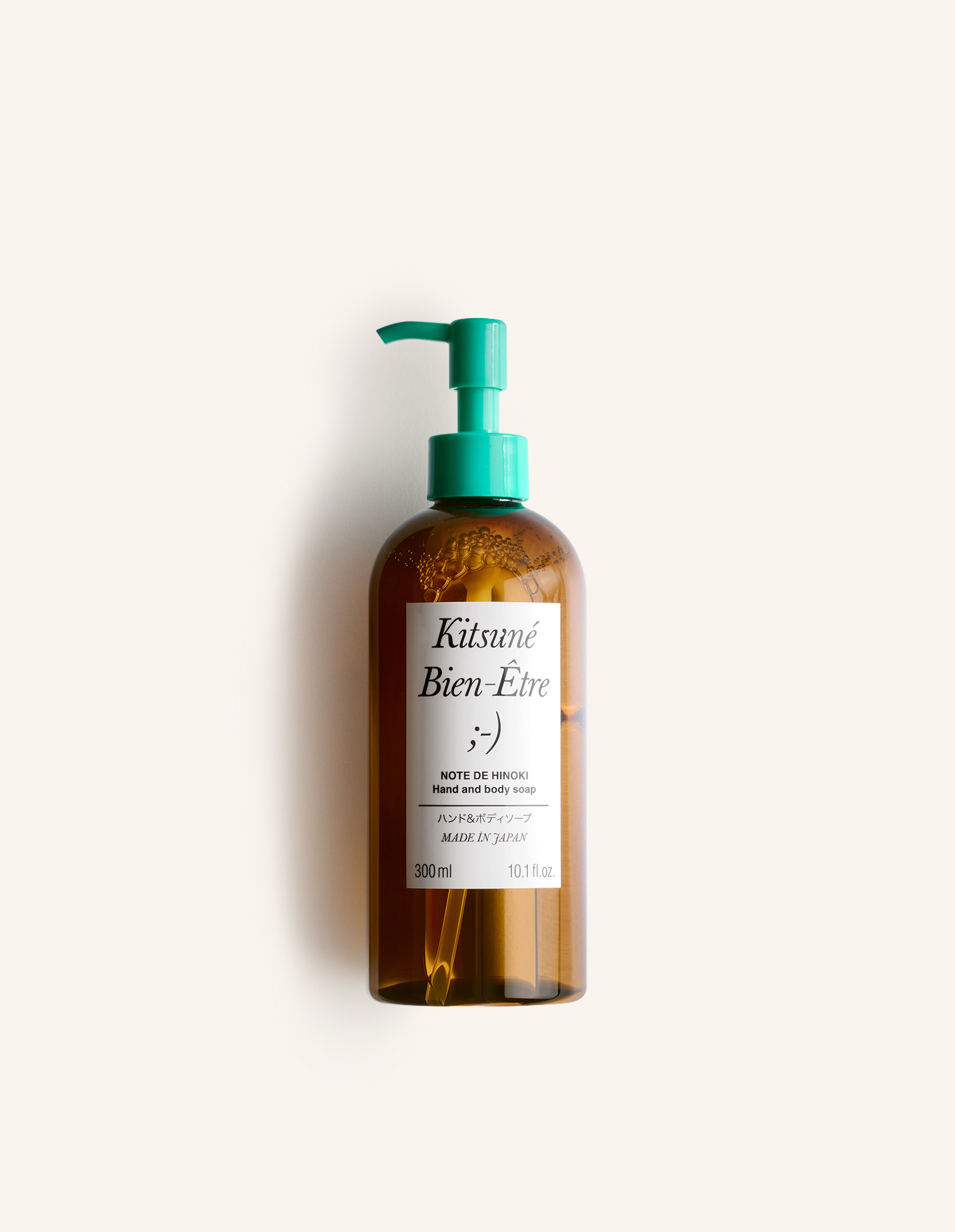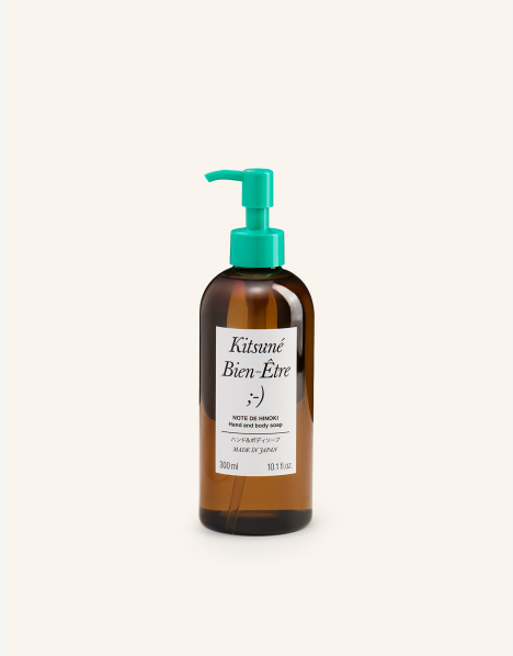 Kitsuné Bien-être brings together Japanese skincare expertise and the French art of perfume to offer a sensory experience. Each product is fragranced with Note de Hinoki signature scent, created by perfumer Barnabé Fillion. A gentle and hydrating soap for hands and body, formulated to cleanse without drying.