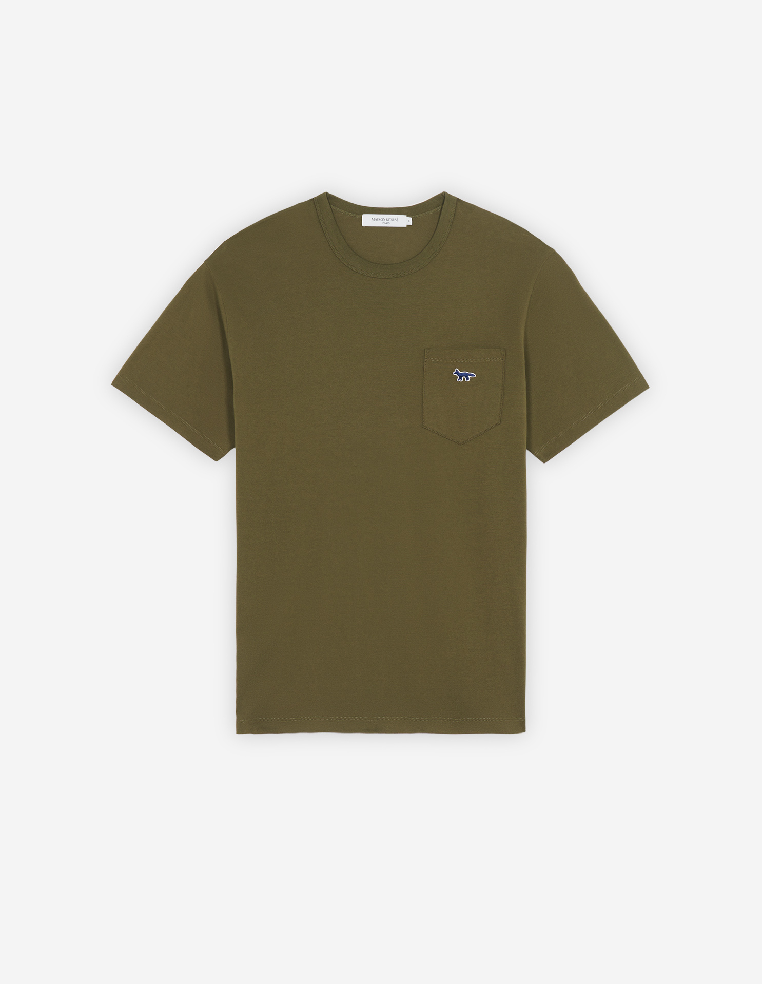 반팔 코튼 티셔츠. 클래식 컷으로 포켓 부분에 네이비 폭스 패치 자수 처리.