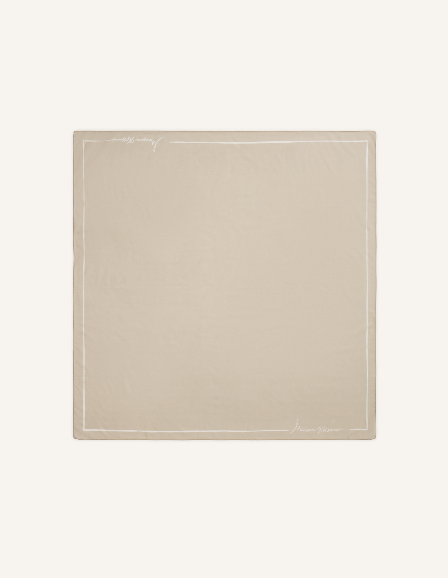 앞면에 포에틱 스크립트 자카드 디자인이 적용된 면 스카프.