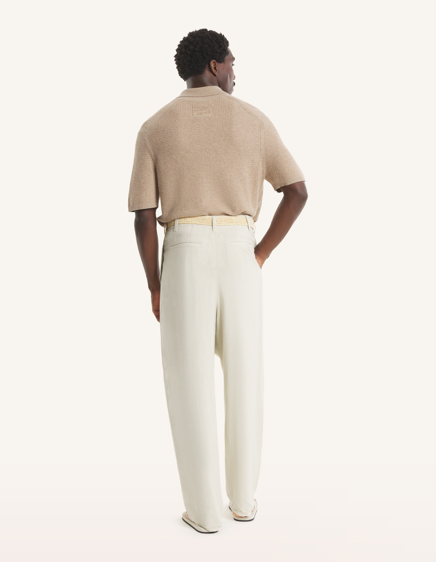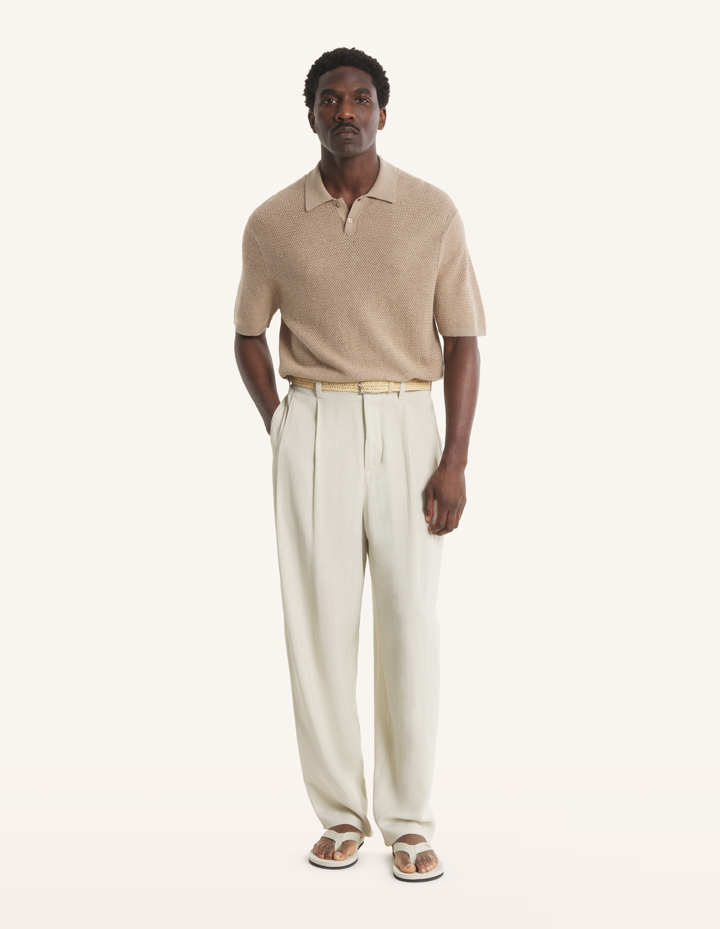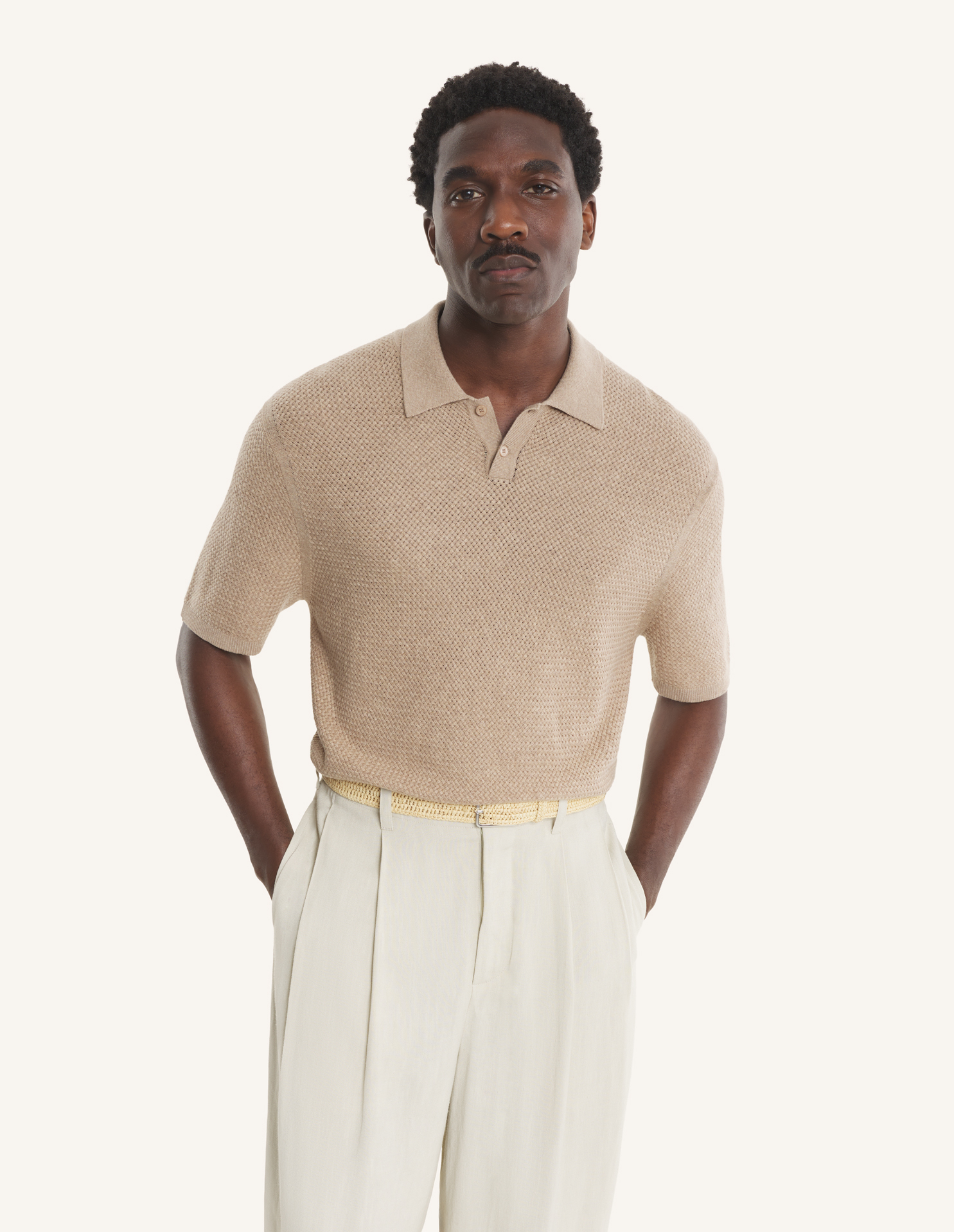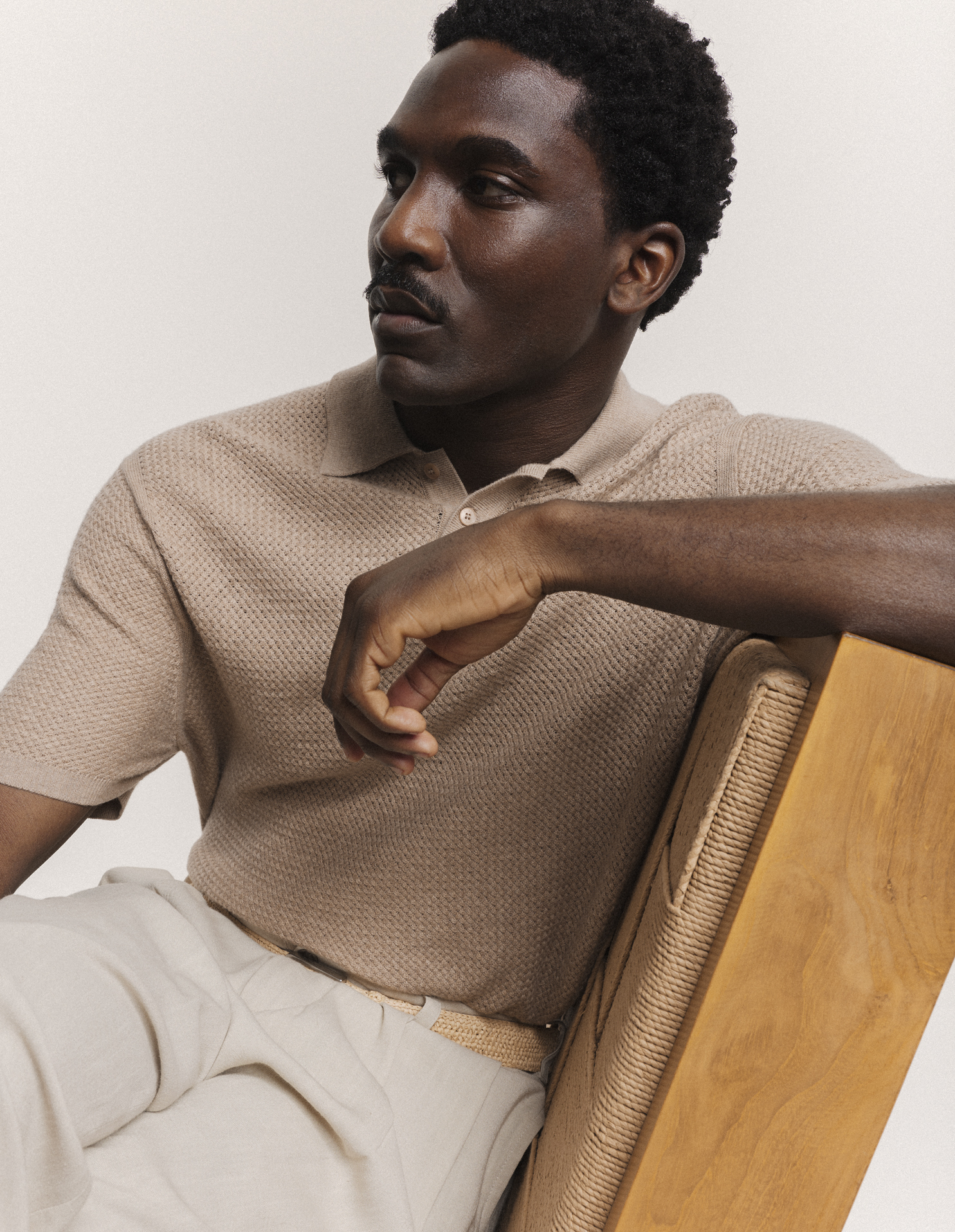 • 가벼운 미니 바스켓 위브 니트 소재의 면과 울 혼방 폴로