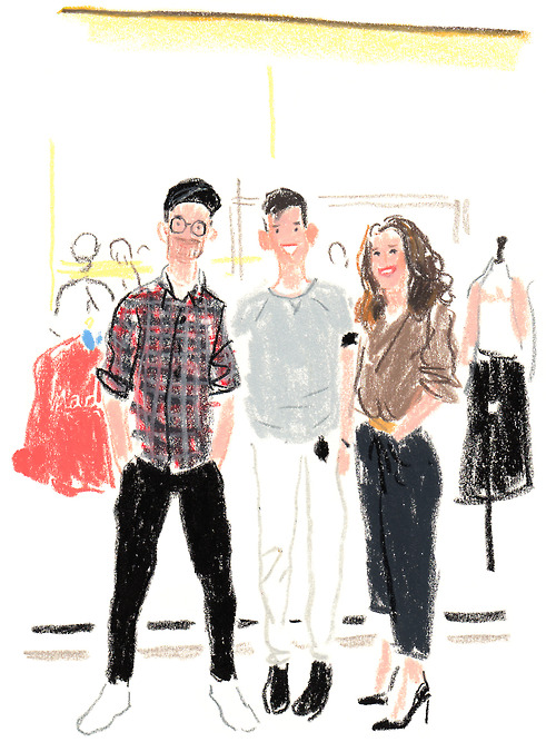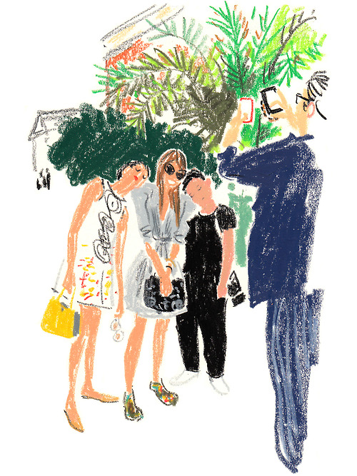 Closely working with New York Times’ lifestyle T Magazine, he certainly knows how to catch the Fashion week spur of the moment. He seizes the ‘cool’ crowd by transposing them on his drawing paper.