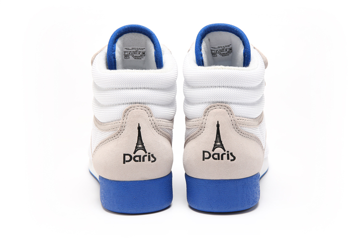 Pay close attention and you’ll see that a heart has slipped in Reebok’s classic logo and that an emblematic Eiffel Tower stands at the back!