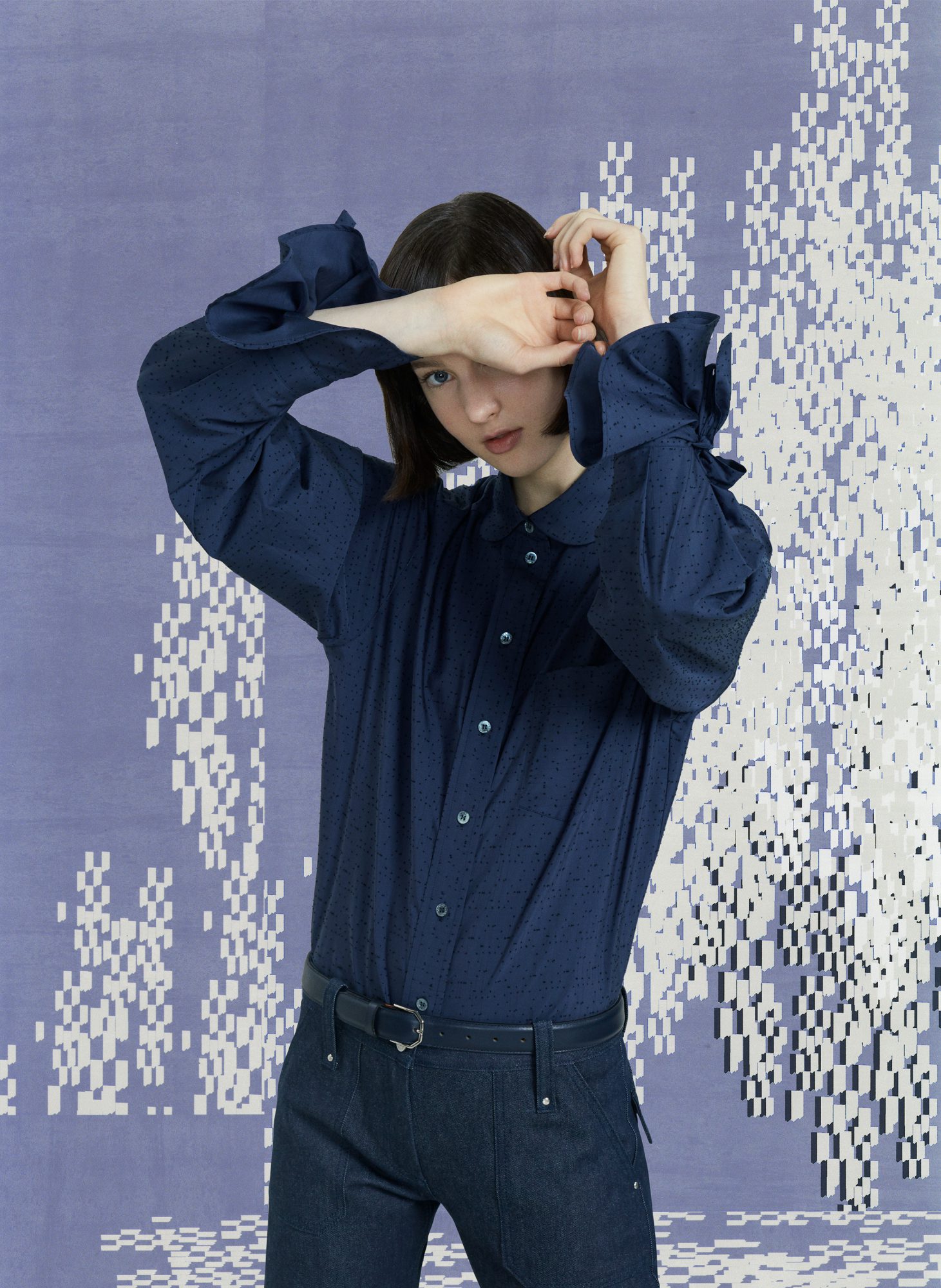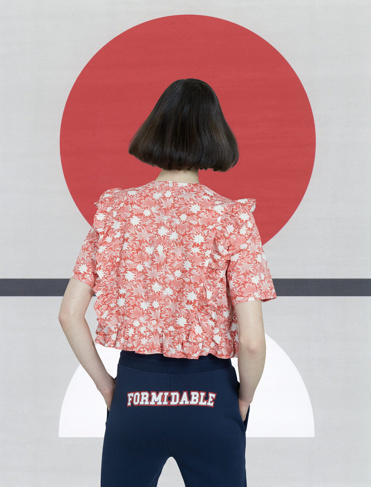 “Courage” and “Formidable” become the slogans of a collection where the games of fabrics and volumes sketch out a profound desire for comfort and protection. This season the Maison Kitsuné woman can have fun and mix genres with confidence. She appropriates clothes for the everyday, according to whim. Thus unveils our vision of the modern woman’s wardrobe complete with cosmopolitan influences and where chic flirts with sportswear. The minimalist silhouettes with ultra-precise detailing, effortlessly blend the masculine with feminine, combining Franco-Japanese heritage and American accents; the look brims with humor, providing dynamic pieces for a wardrobe that ranges from laidback cool to au courant sophistication.