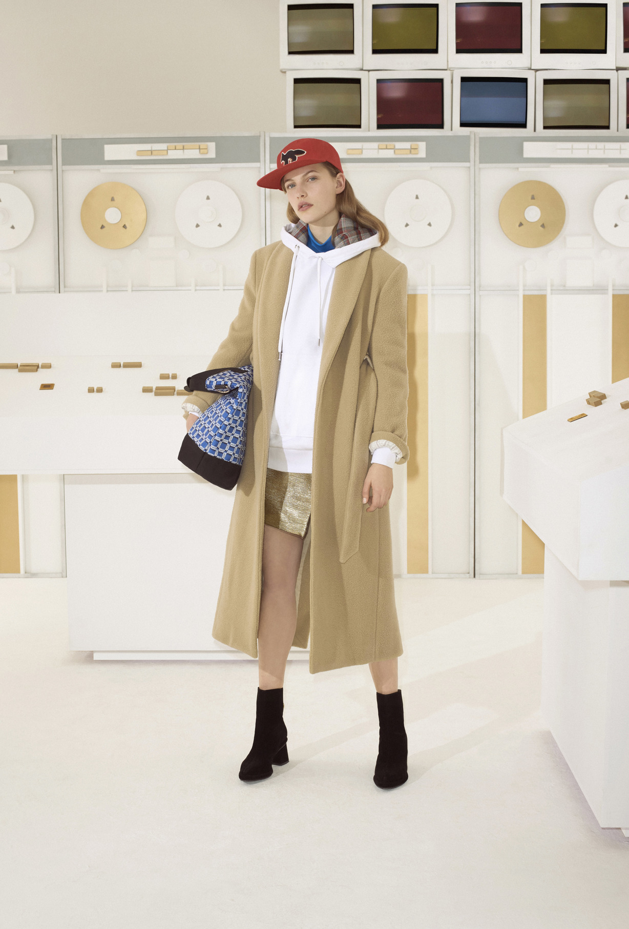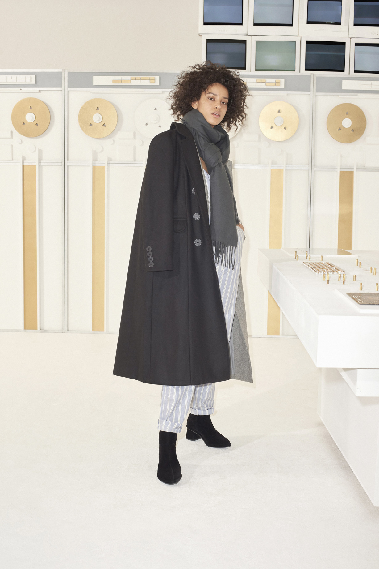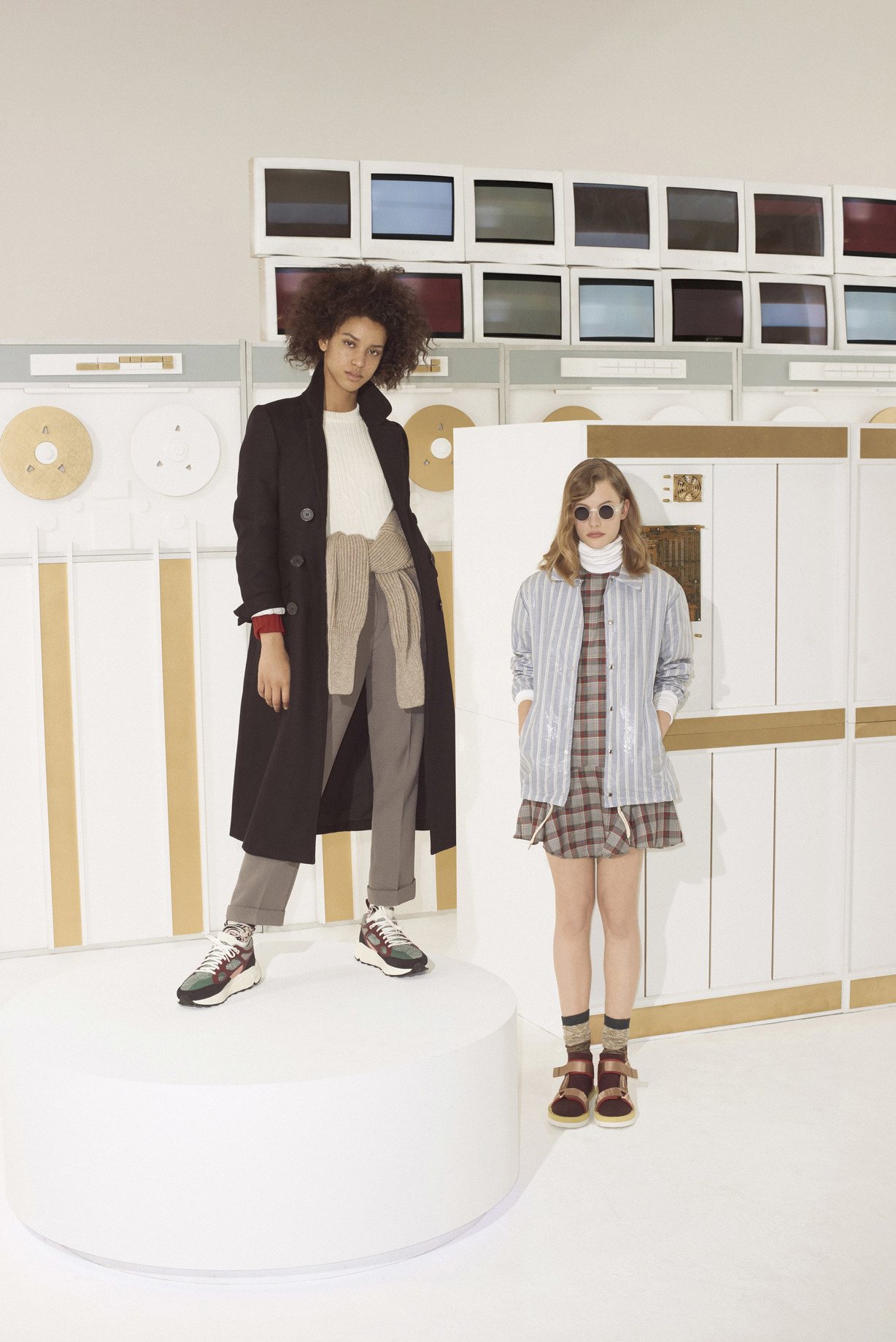 Focusing on comfort and protection, this womenswear line cleverly combines materials and “techie” finishes with more natural fabrics. The wind-breaker in stripy cotton has been coated and the winter parker has been reinvented in a showerproof technical flannel finished with faux shearling and a hood. As for the color palette, it gives pride of place to greys, greens and burgundy, softened with shades of white and brown. Splashes of light blue, mustard yellow, a range of pinks and reds magnify the looks.