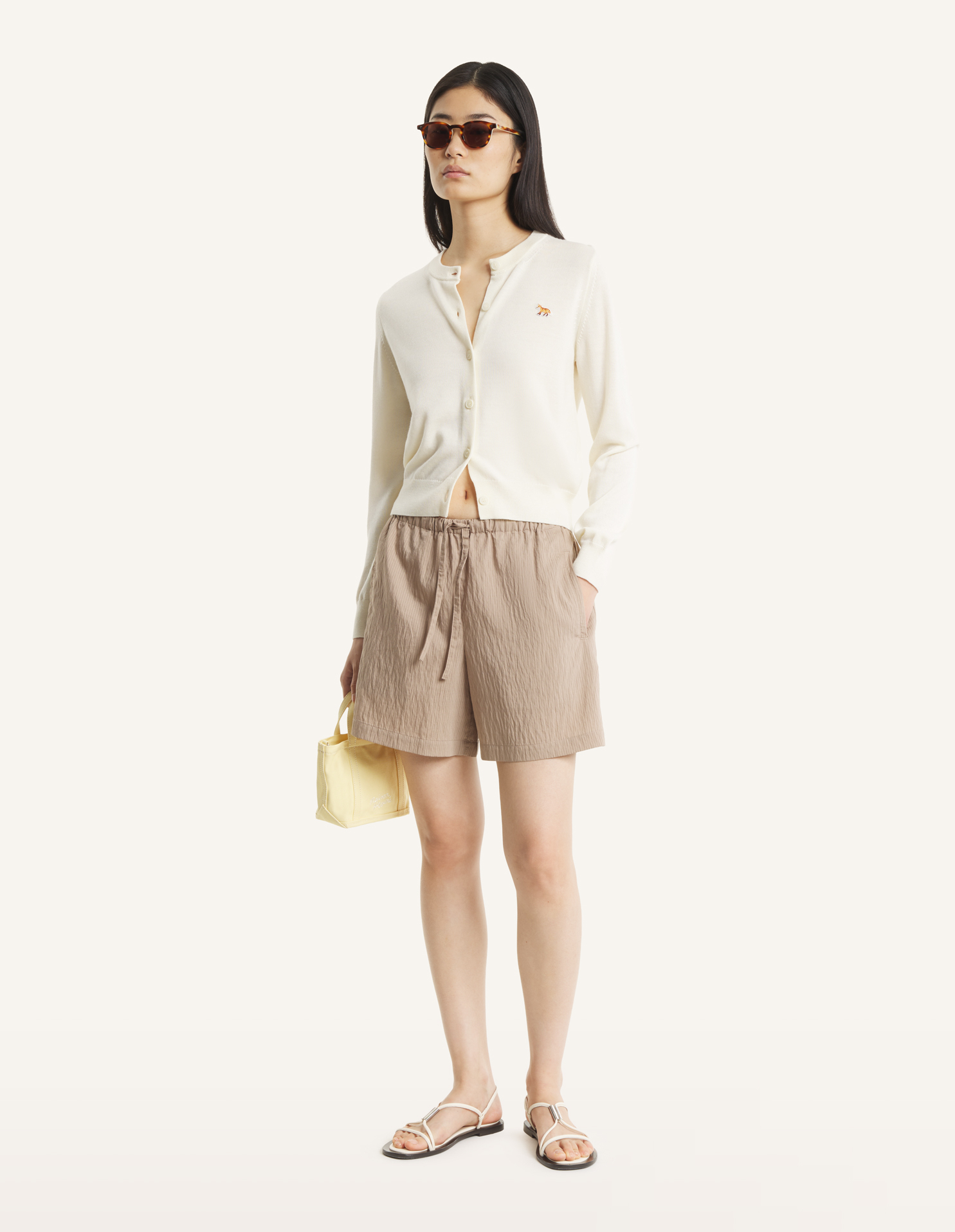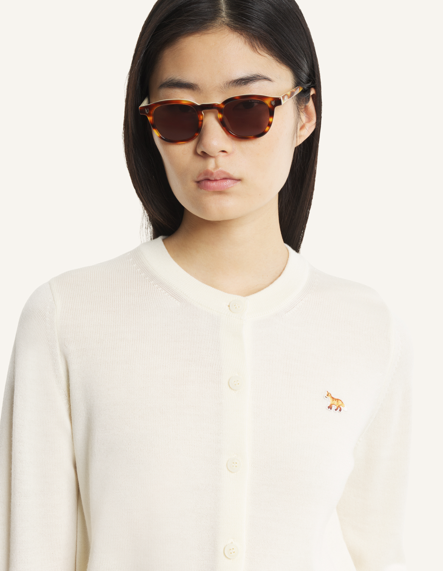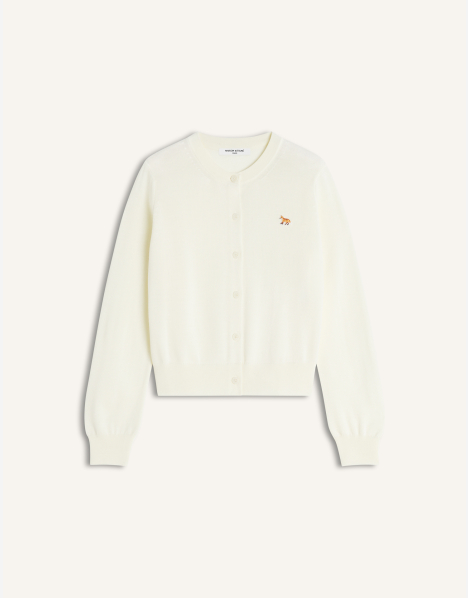 Merino wool cardigan. Regular fit with Baby Fox embroidered patch on the chest.