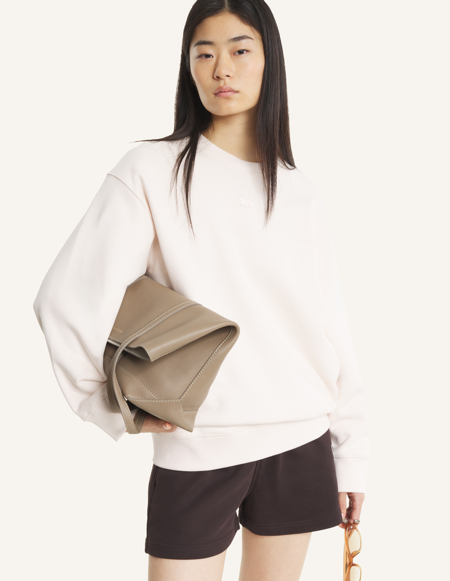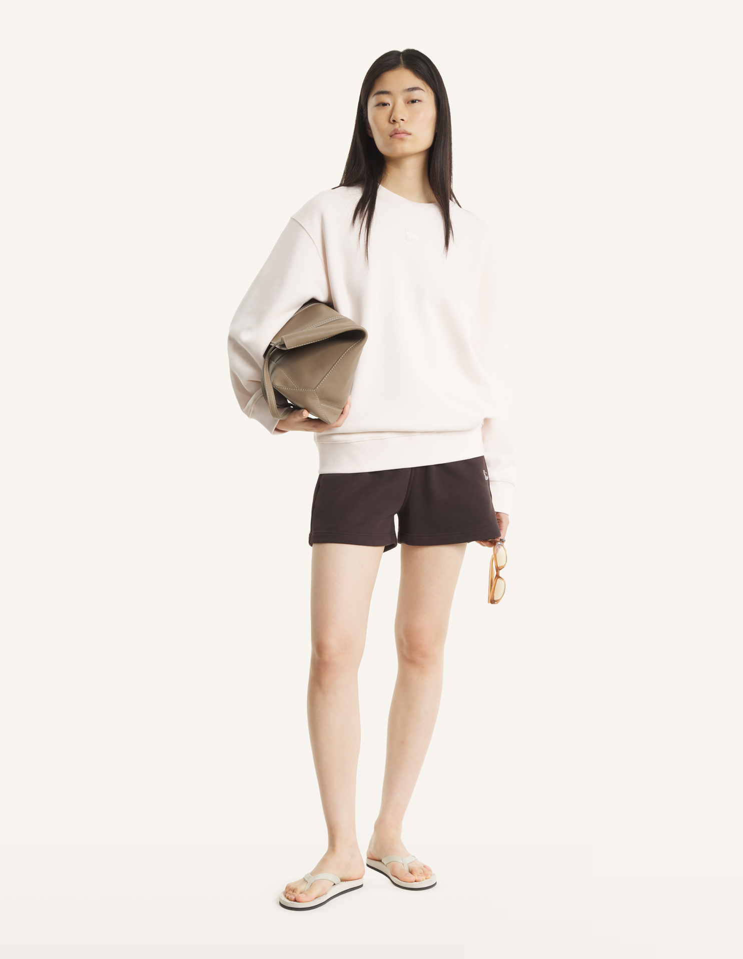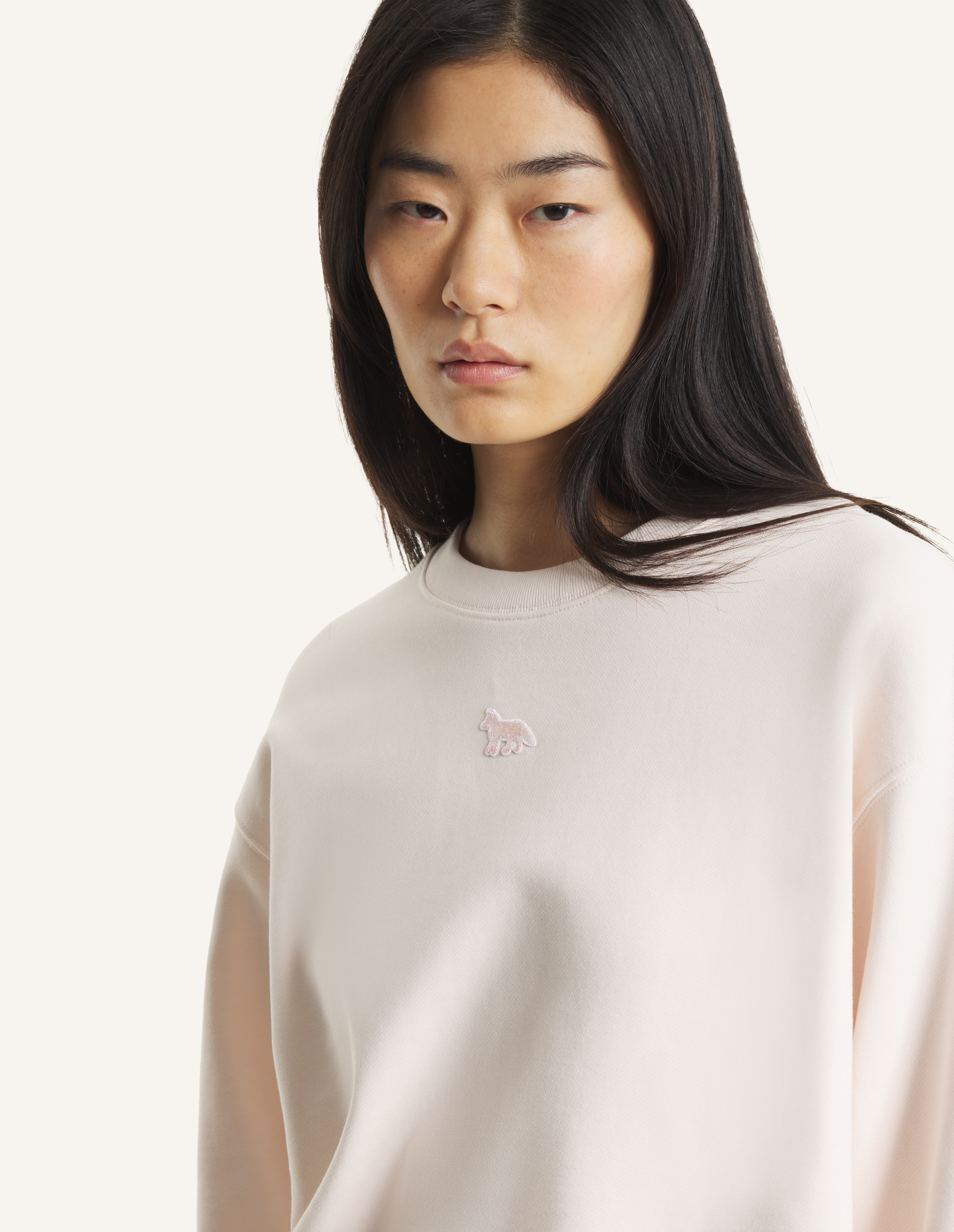 Oversize sweatshirt in cotton casual fleece. Baby Fox embroidered patch on the chest.