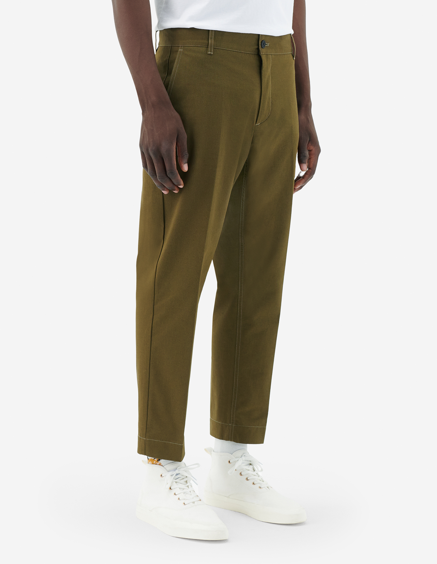 Cotton canvas carrot pants. - Cotton pants - Loose leg - Single-button closure and hidden zipper - Waistband with belt loops - Slash front pockets - Flap back pocket