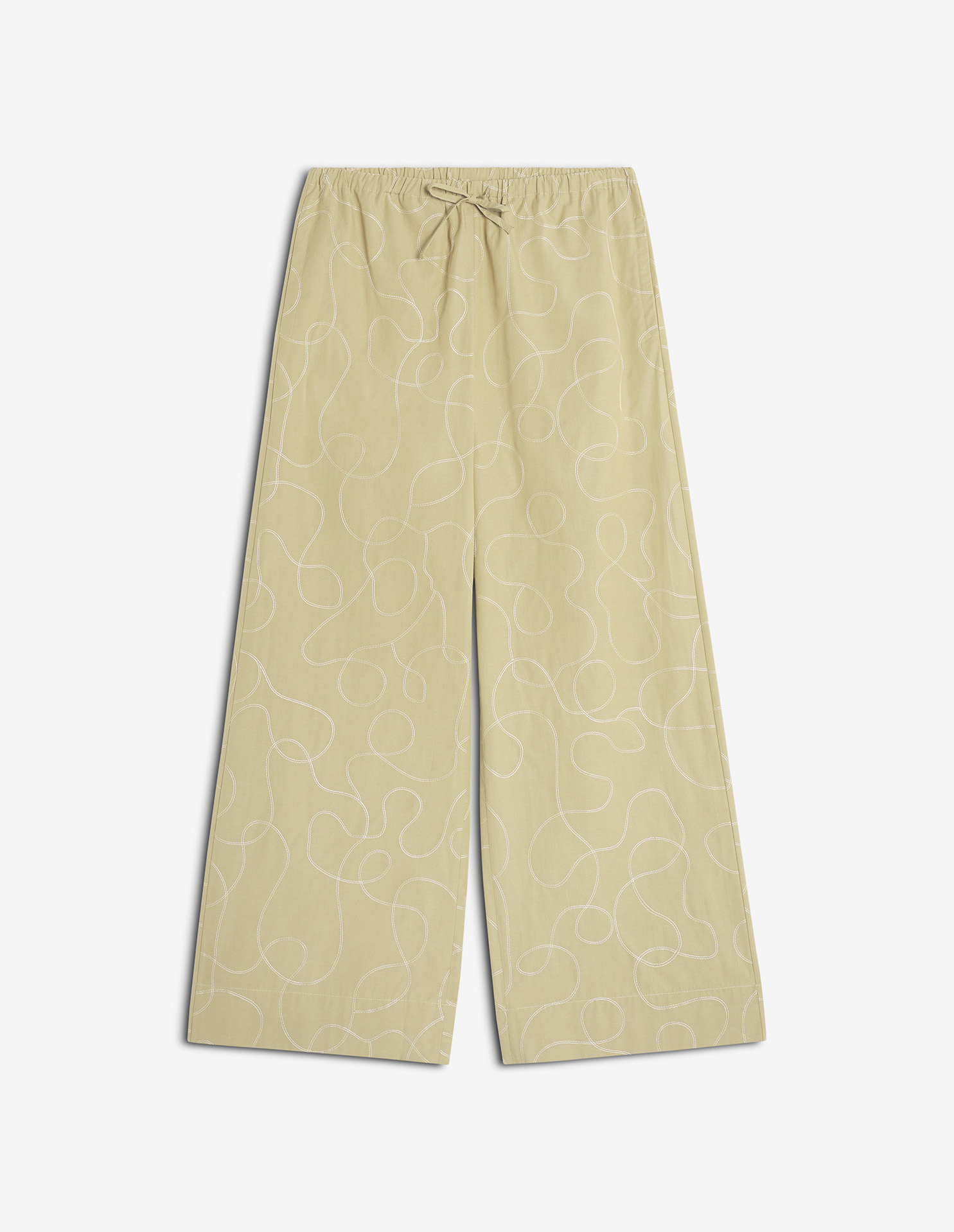 • Wide-leg pants in light chambray