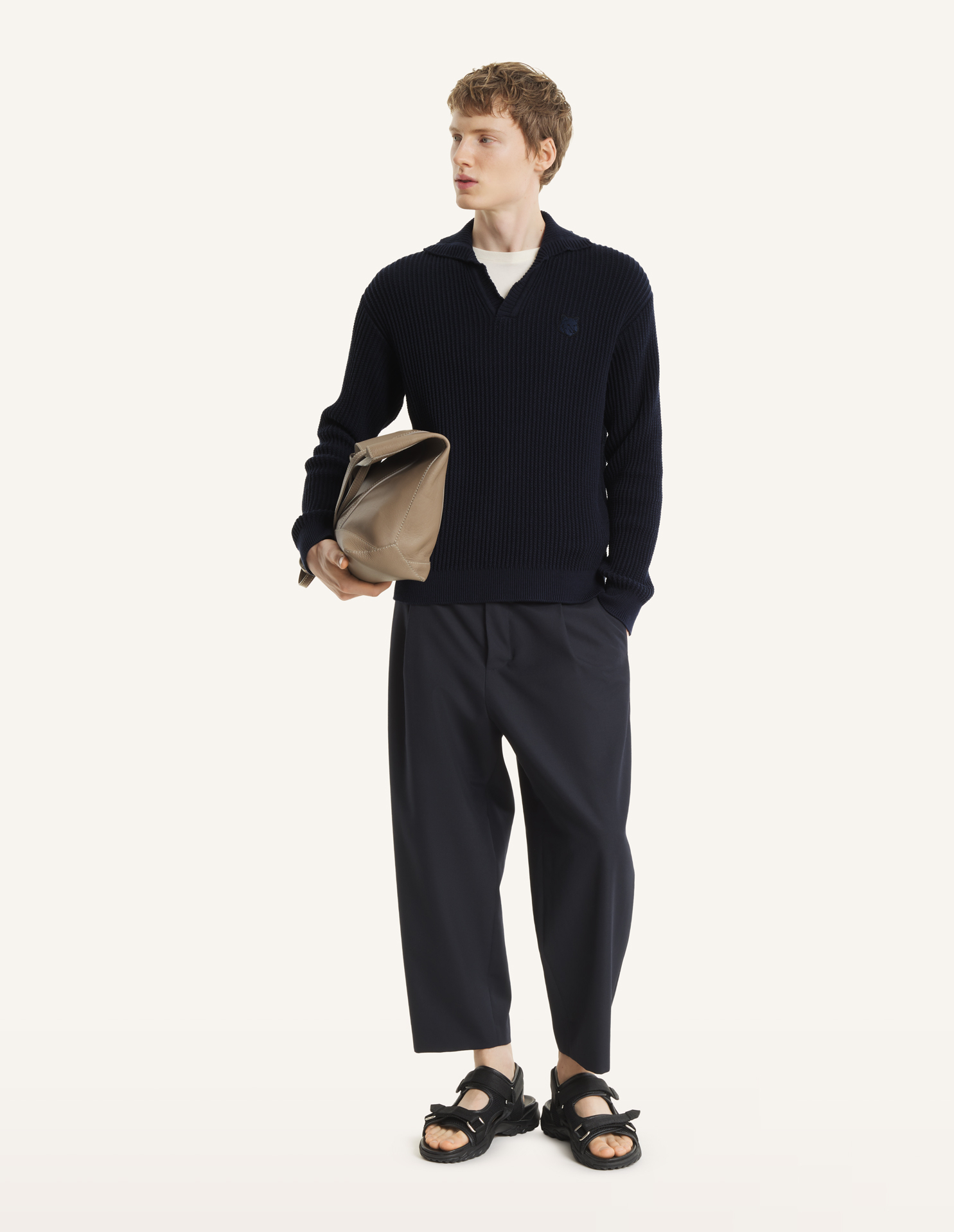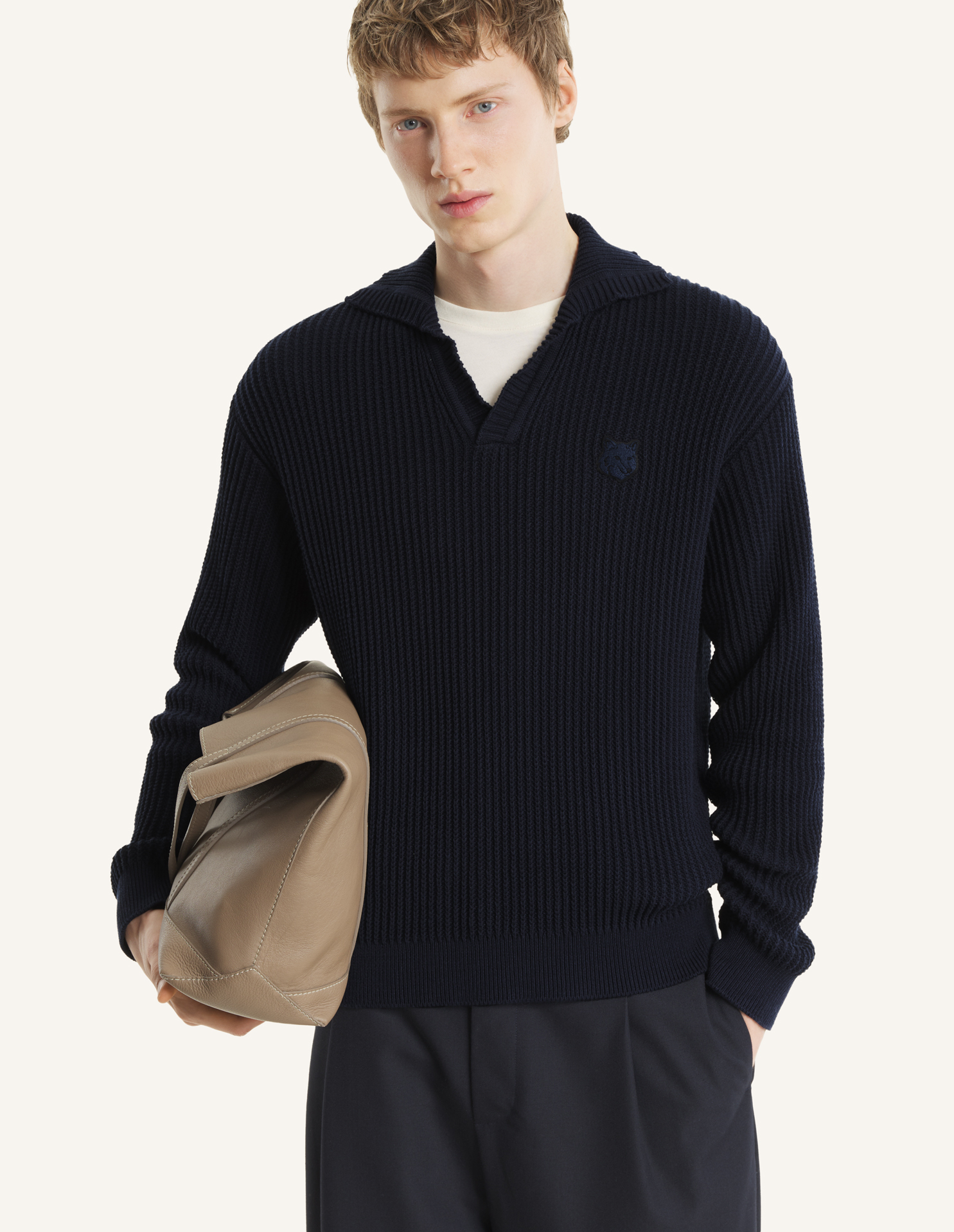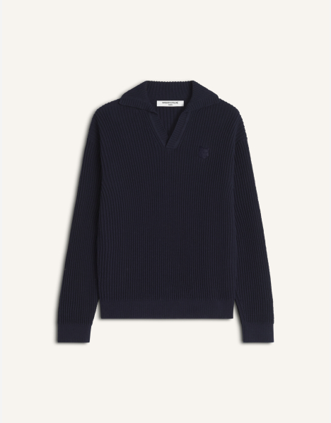 Ribbed polo jumper in cotton. Comfort fit with Fox Head embroidered patch on the chest.