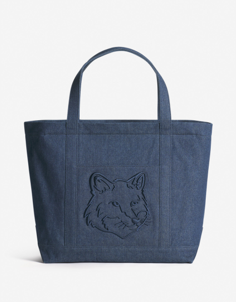 Large Fox Head denim tote bag.