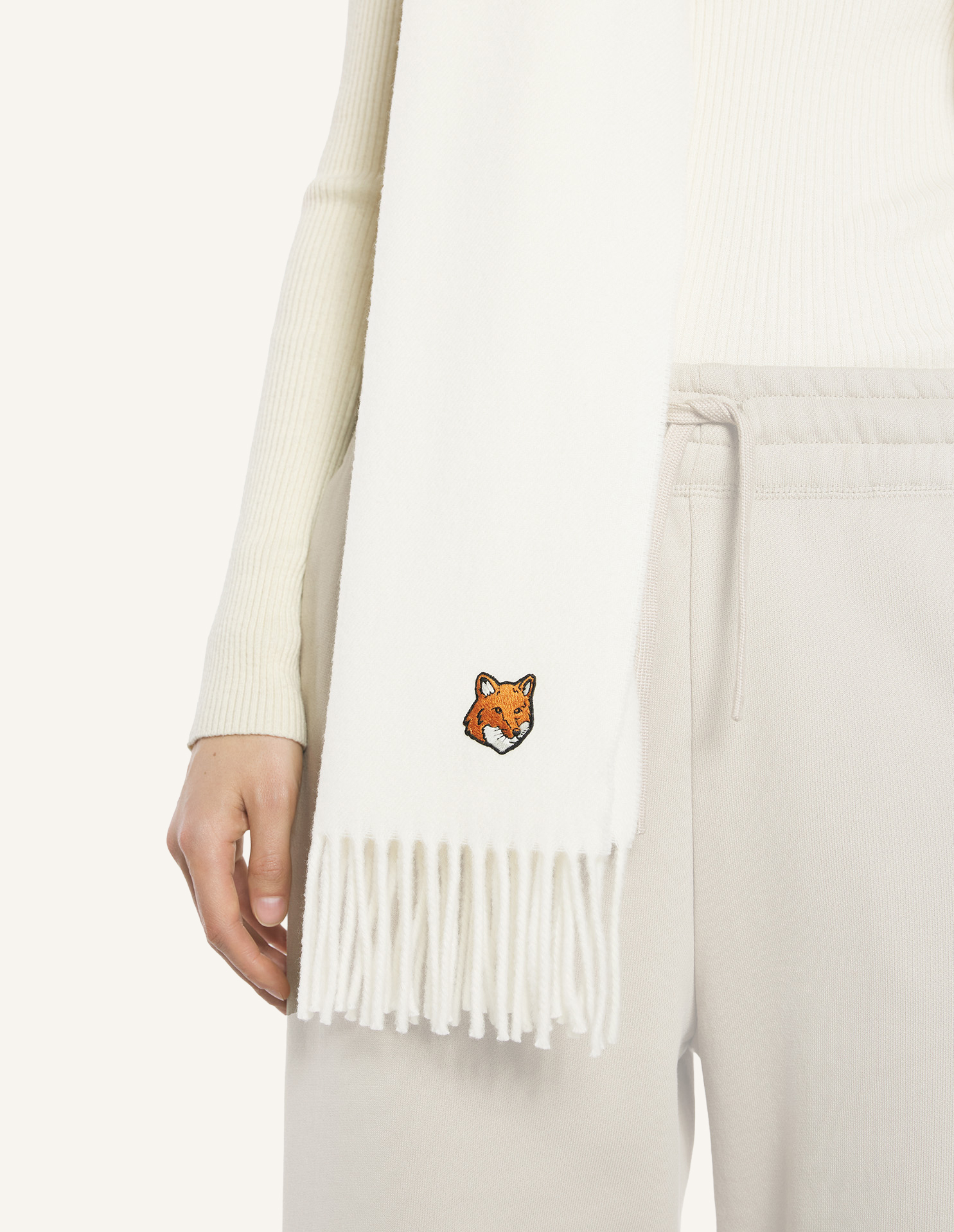 Scarf in virgin wool. Fox Head embroidered patch at the edge.