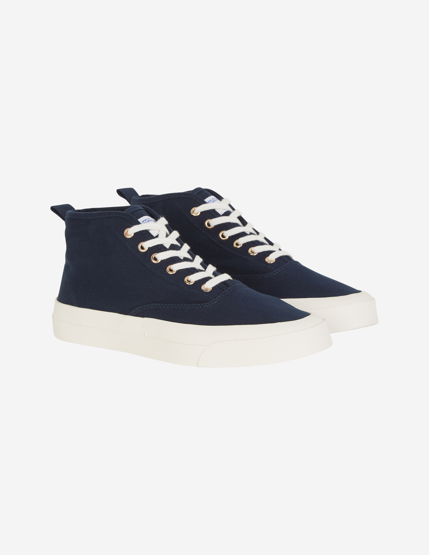 Unisex high top cotton canvas sneakers. - Plain cotton canvas - Thick rubber soles - Contrast laces - “Maison Kitsuné” label on the tongue and heel
