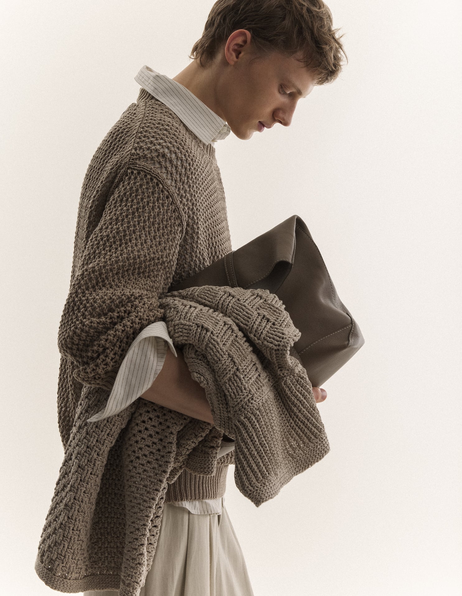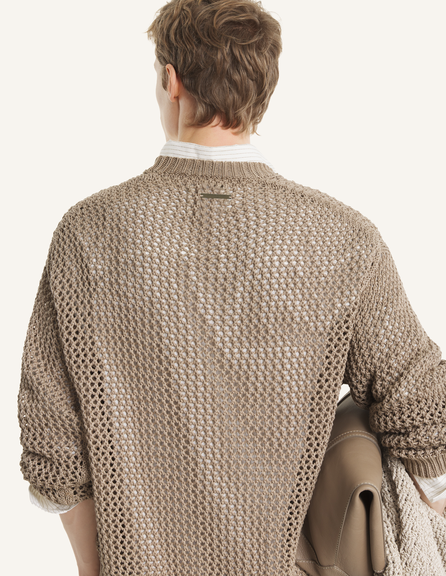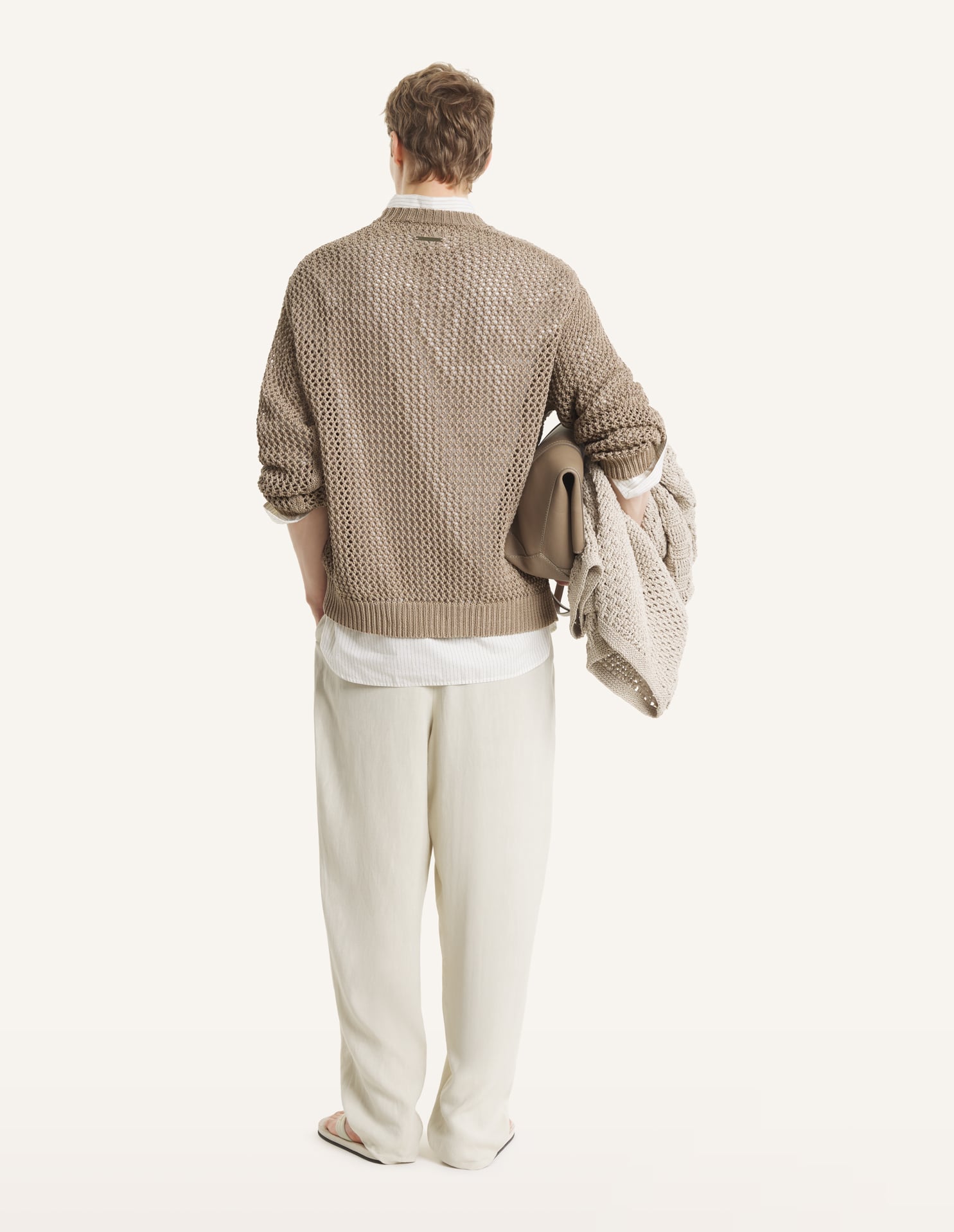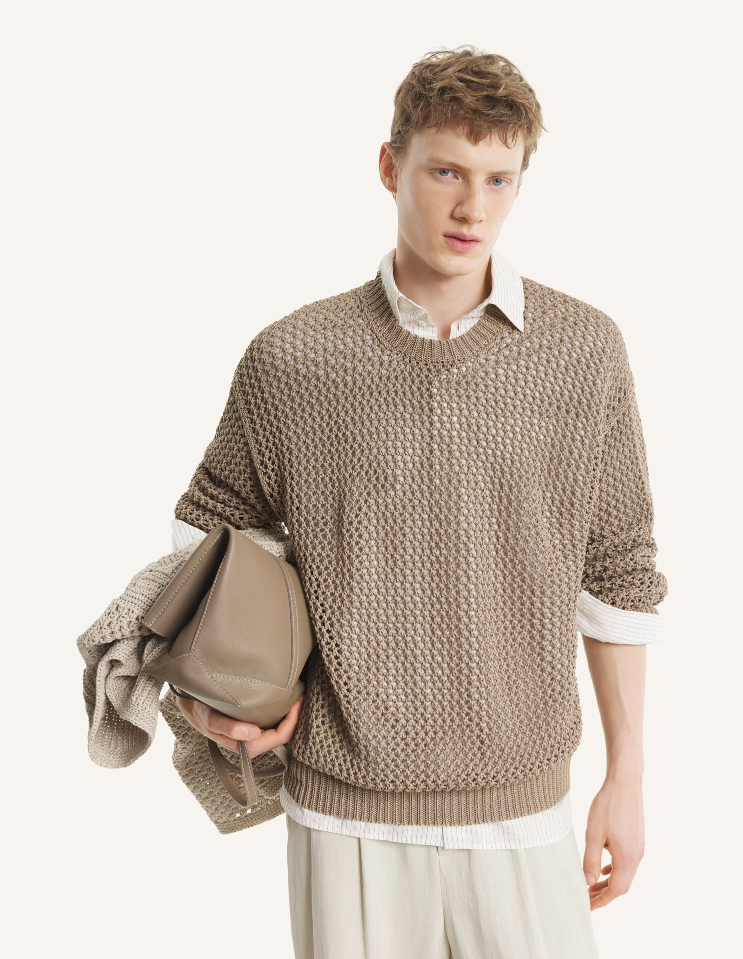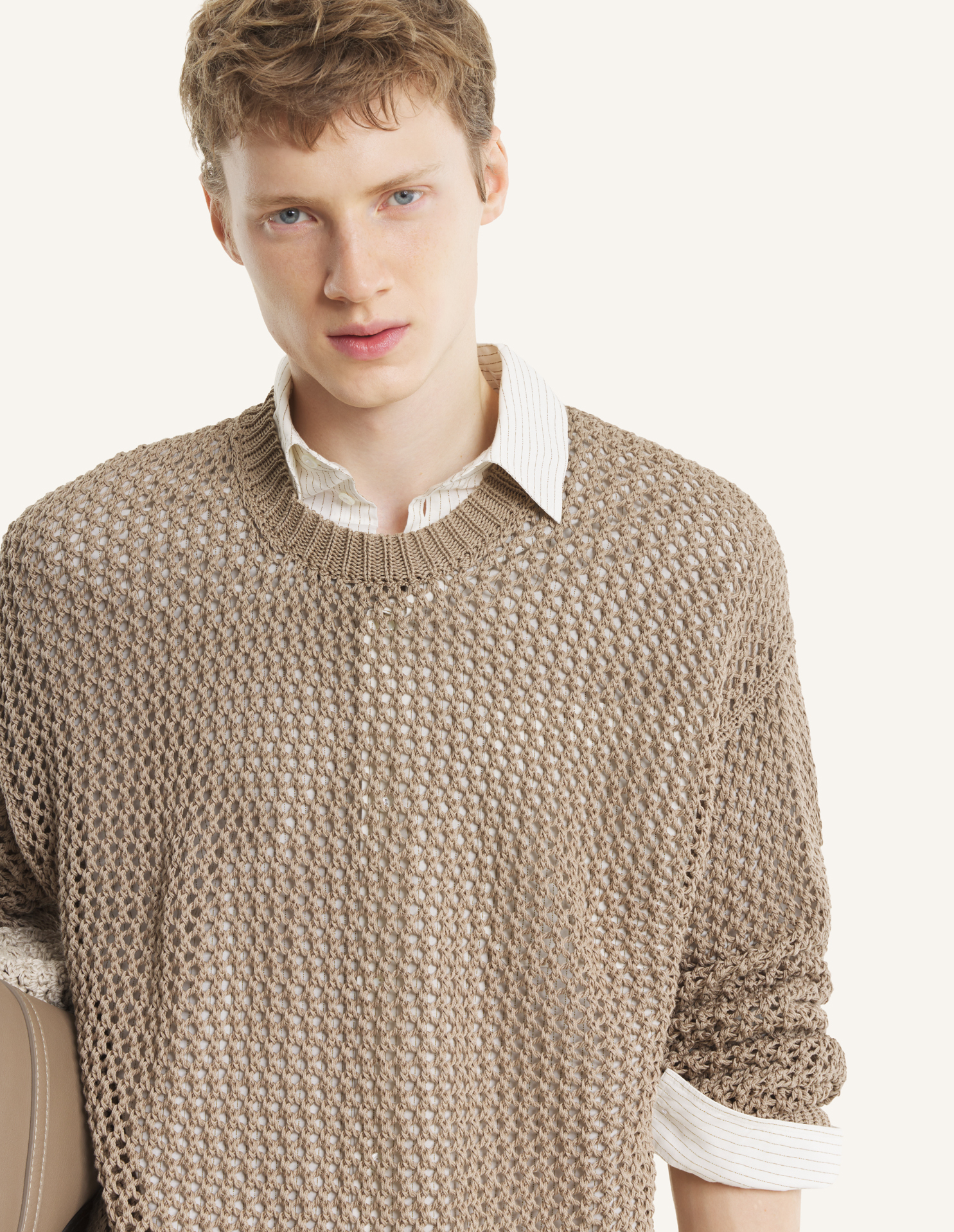 Open-knit jumper in large pointelle cotton. Oversize fit with Maison Kitsuné Paris tonal metal rivet at the back neckline.