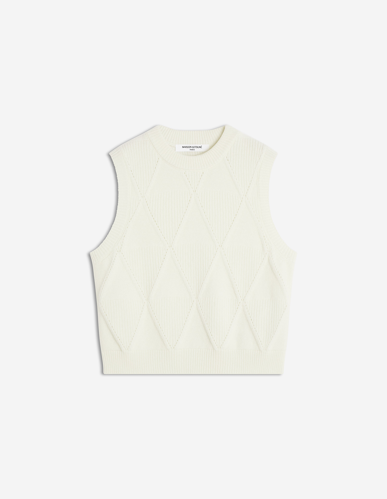 Sleeveless wool vest with Argyle knitted pattern. Relaxed fit, Maison Kitsuné Handwriting signature embroidery