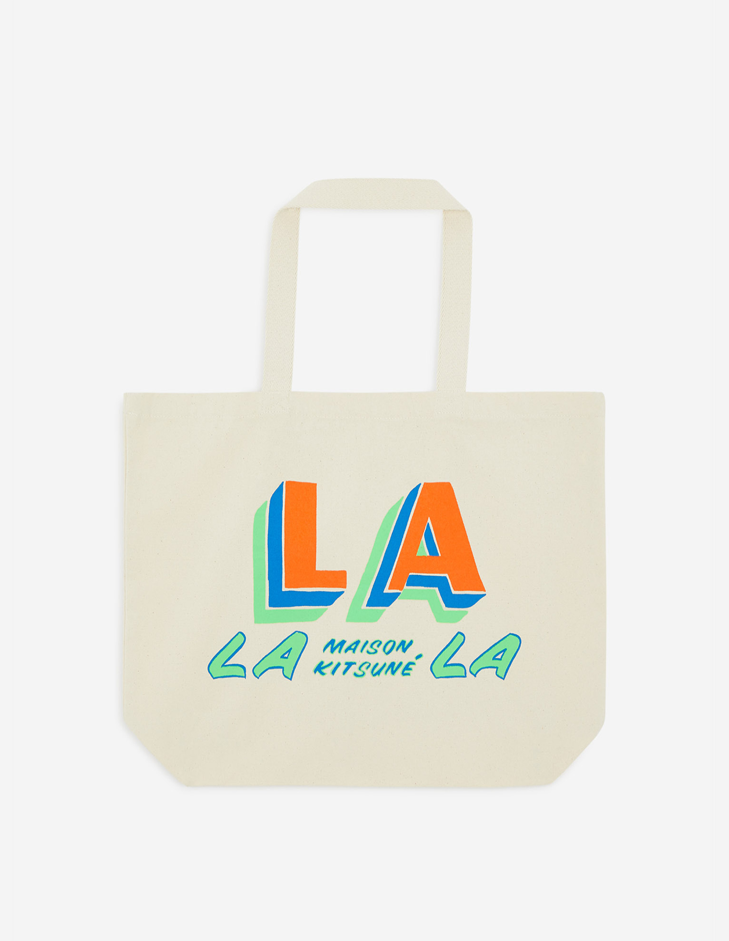 BEN KLEVAY x MAISON KITSUNÉ cotton shopping bag. Cotton grosgrain handles, printed inscriptions logo on front. Length 35cm / Height 47cm / Depth 11cm.