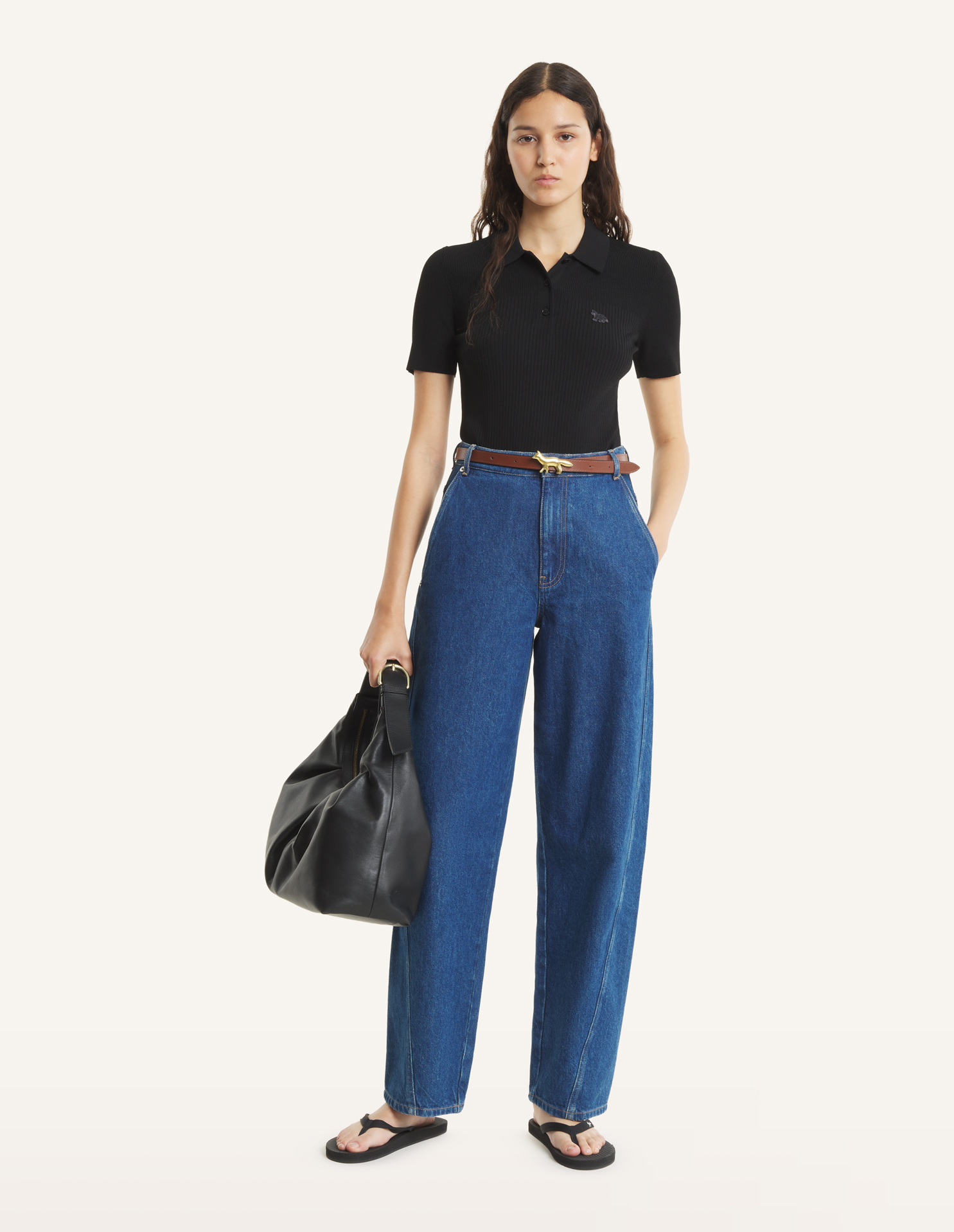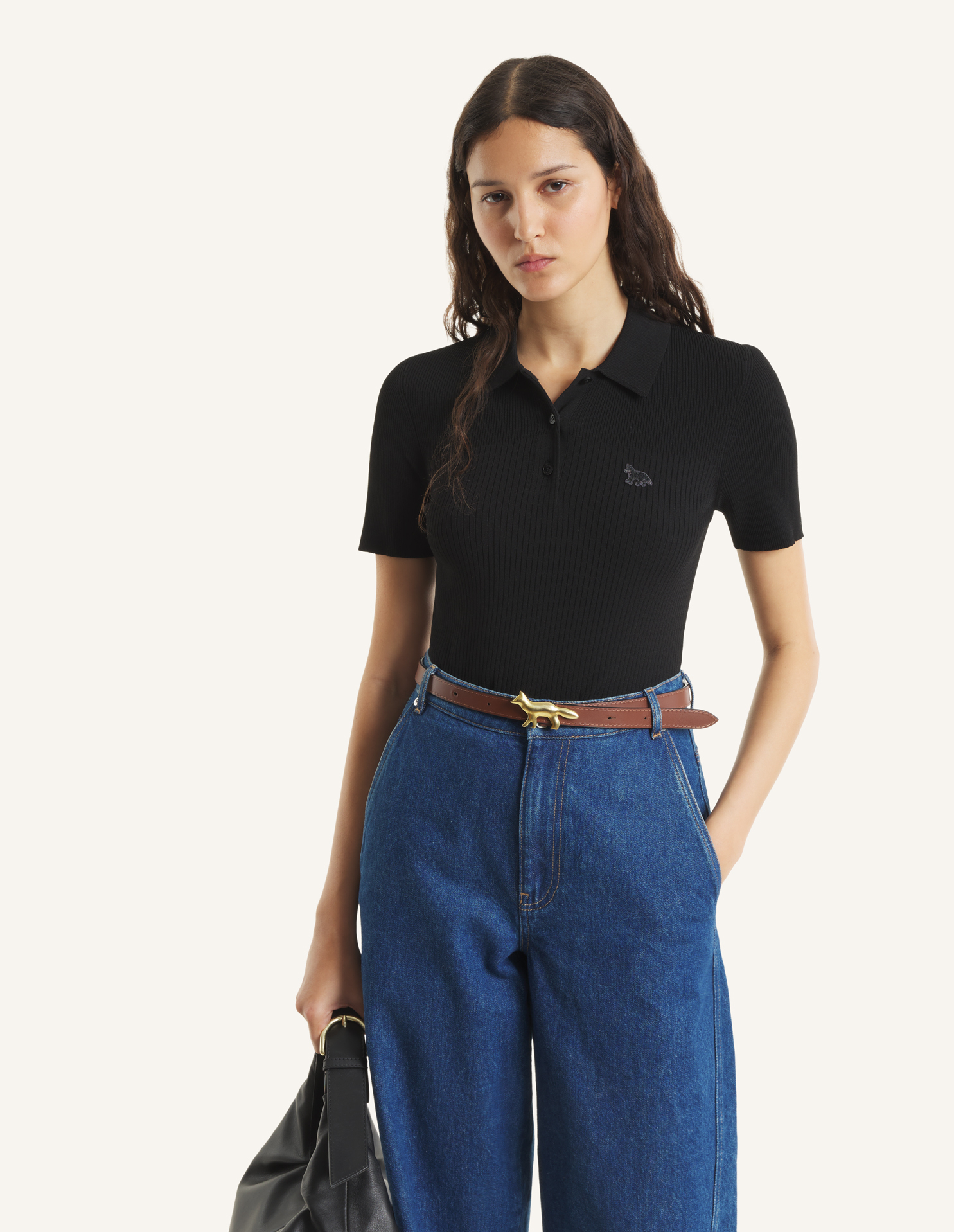 Polo in pleated viscose rib. Fitted cut with Baby Fox embroidered patch on the chest.