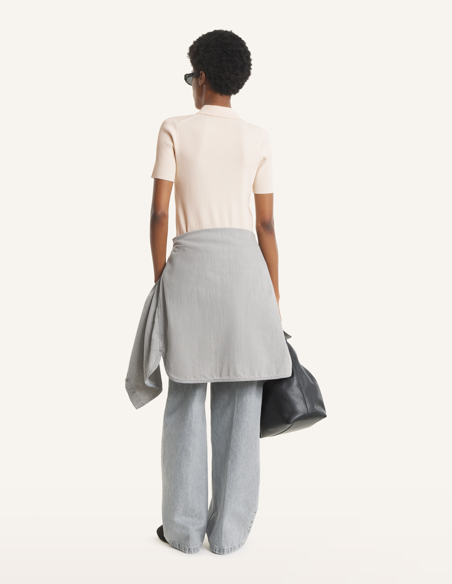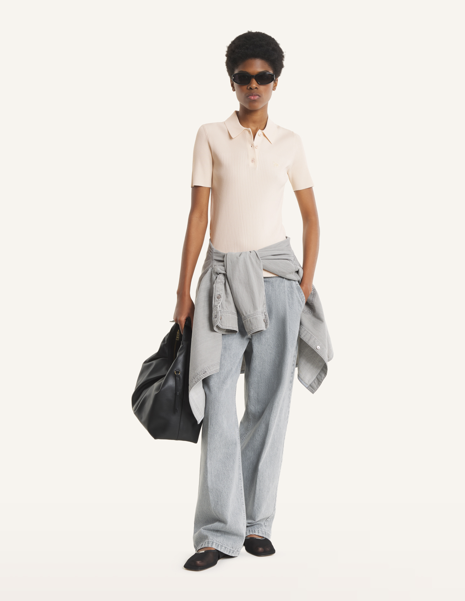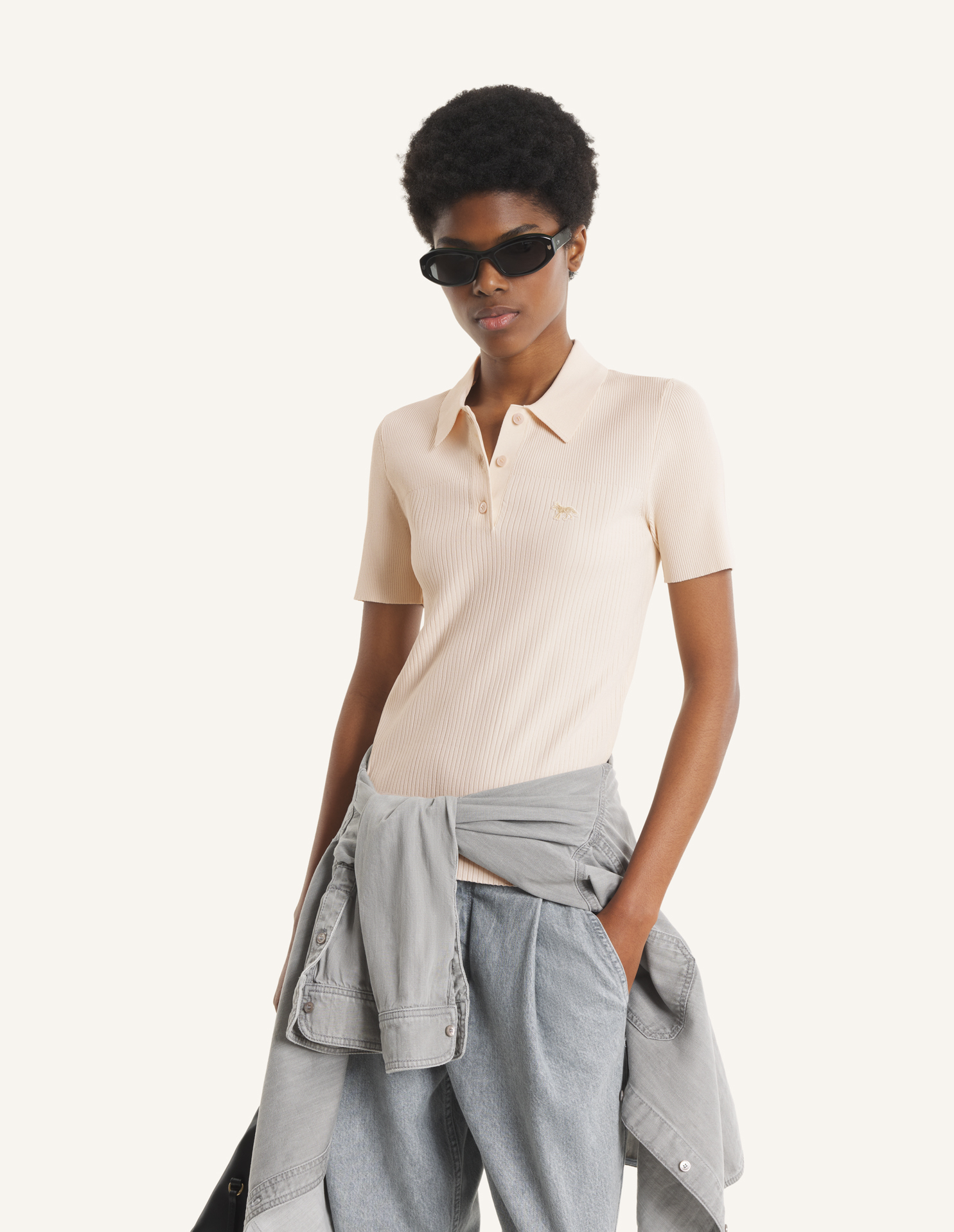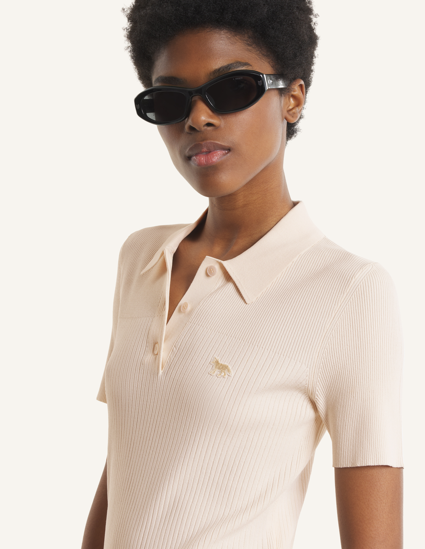 Polo in pleated viscose rib. Fitted cut with Baby Fox embroidered patch on the chest.