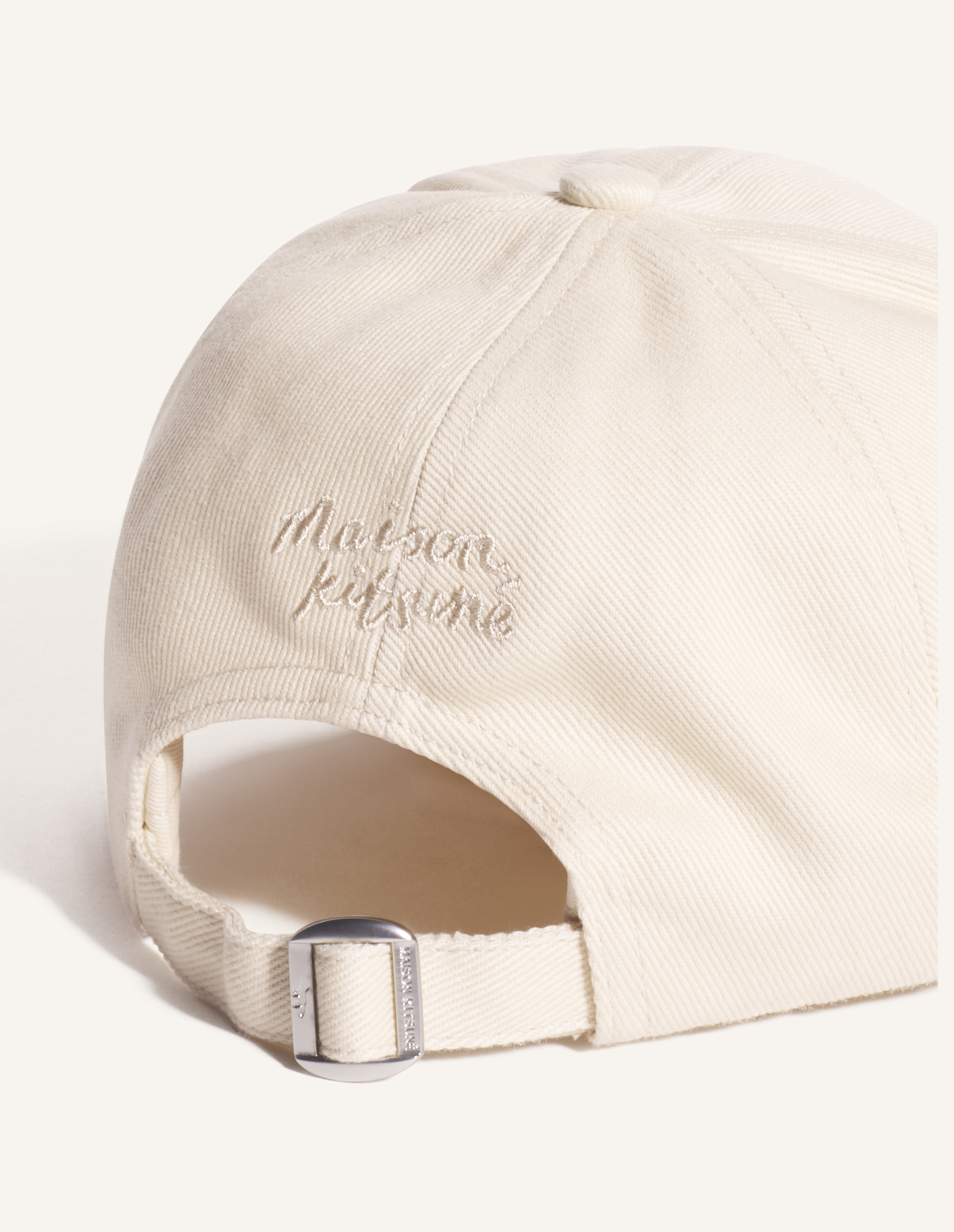 Adjustable metal buckle at the back engraved with Maison Kitsuné and Profile Fox