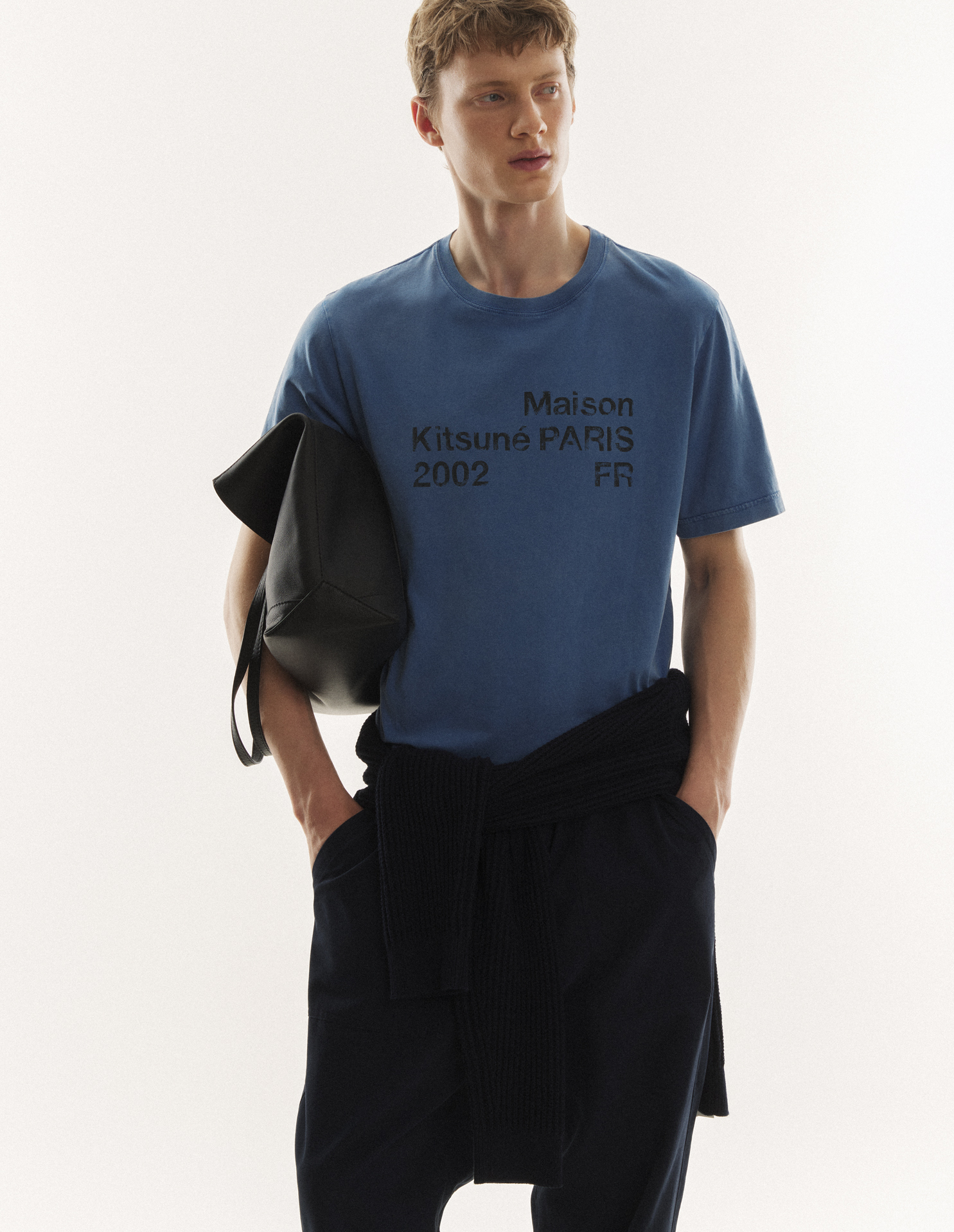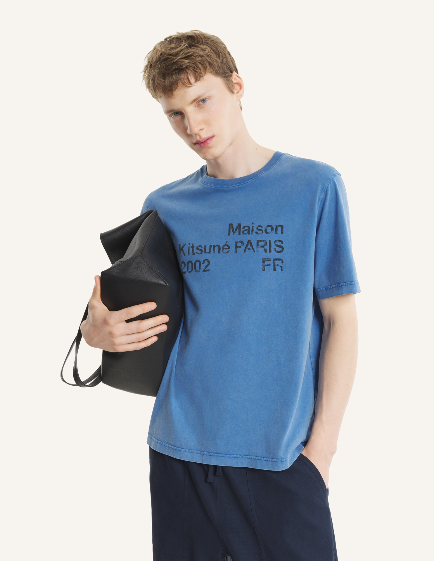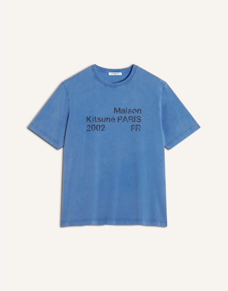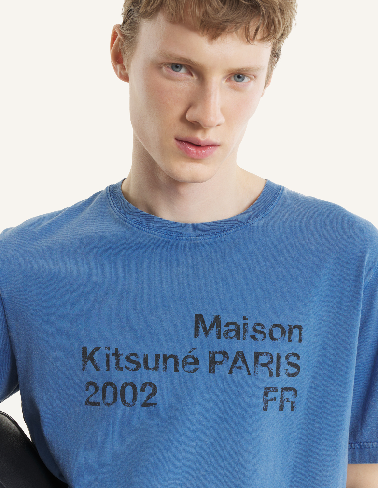 Lightweight faded jersey t-shirt. Comfort fit with Maison Kitsuné Paris 2002 faded print on the chest.