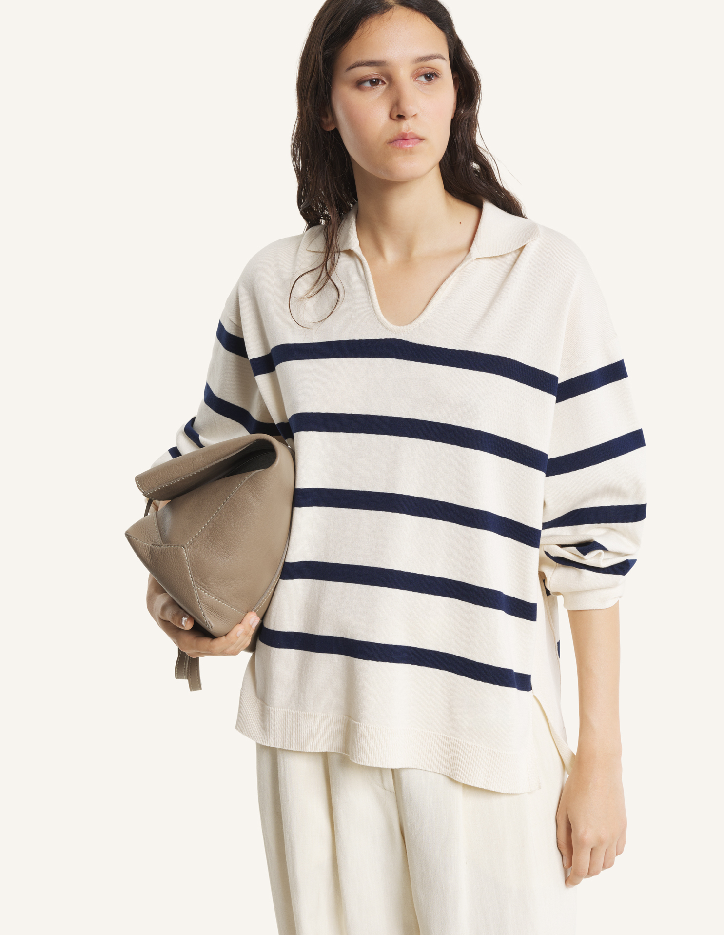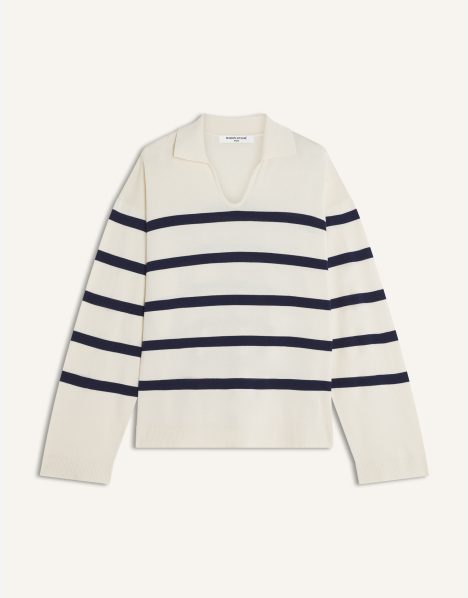 Striped mariniere jumper in cotton. Relaxed fit with Maison Kitsuné Paris embroidery at the back neckline.