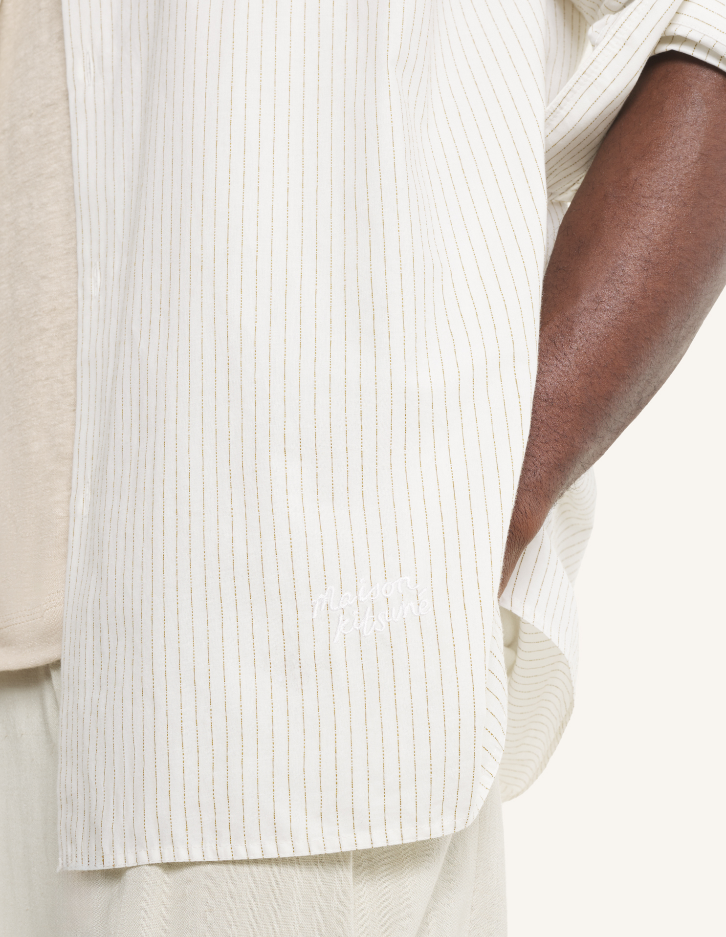 Oversized shirt in a dotted stripe cotton poplin. Maison Kitsuné Handwriting embroidery at the bottom left.