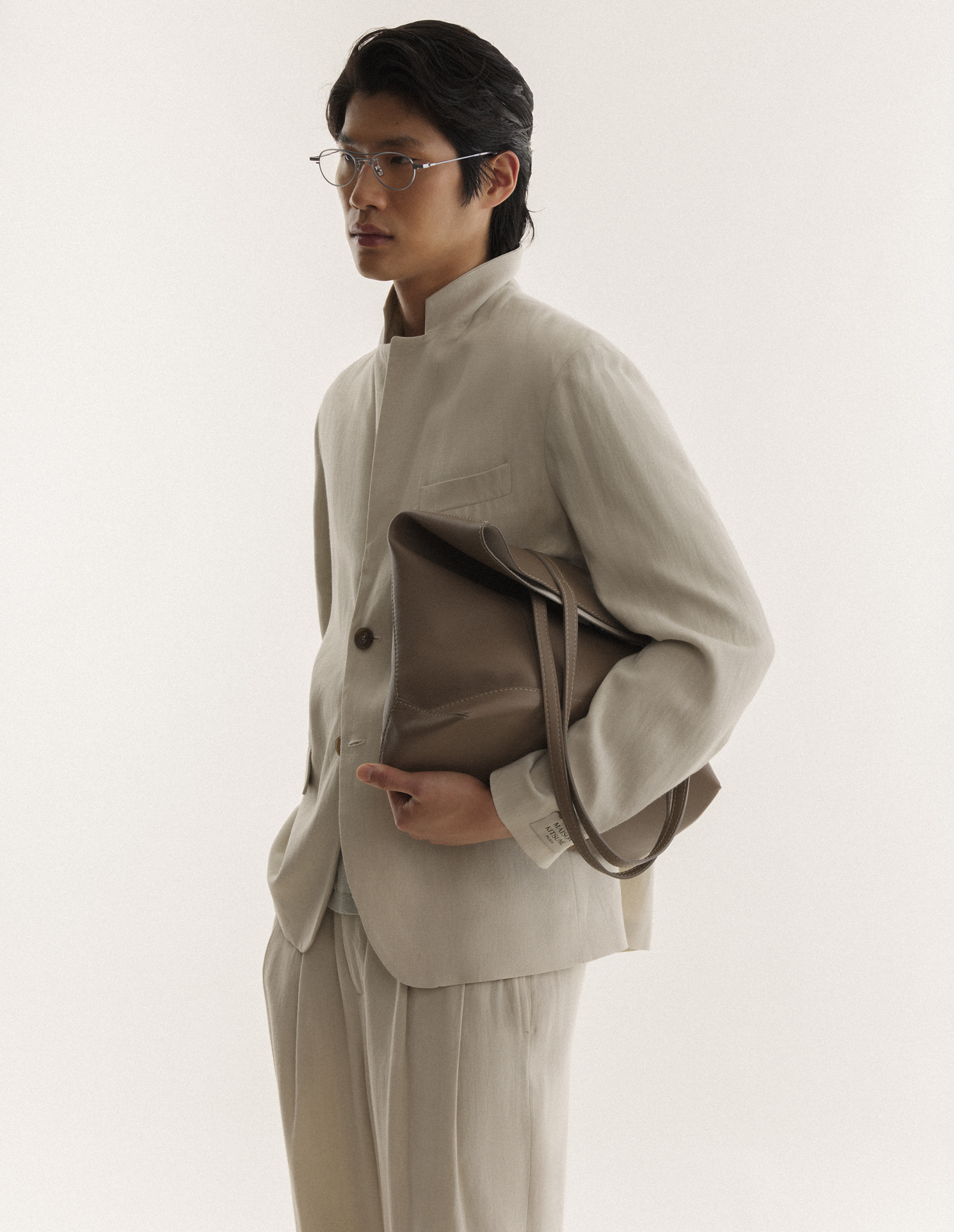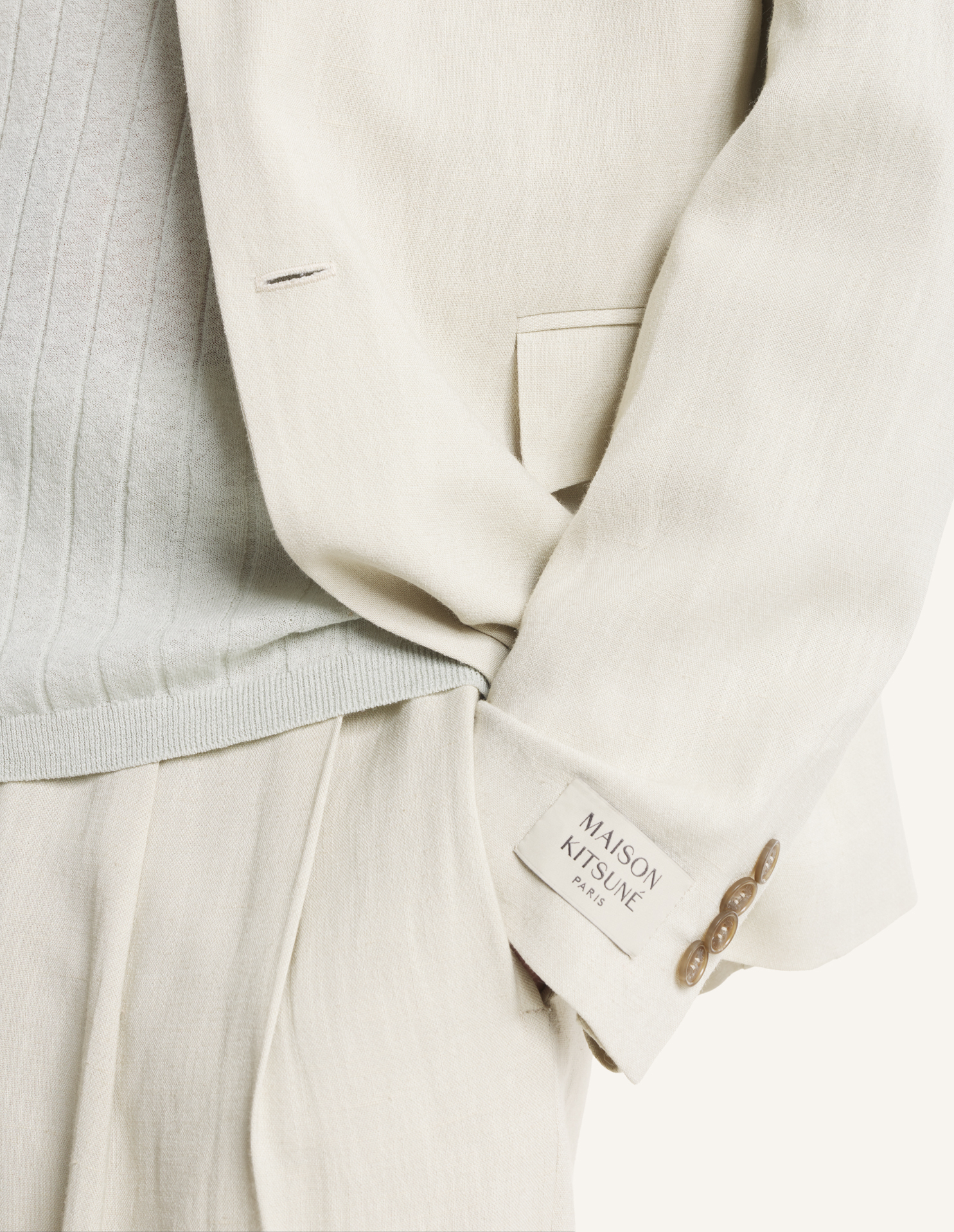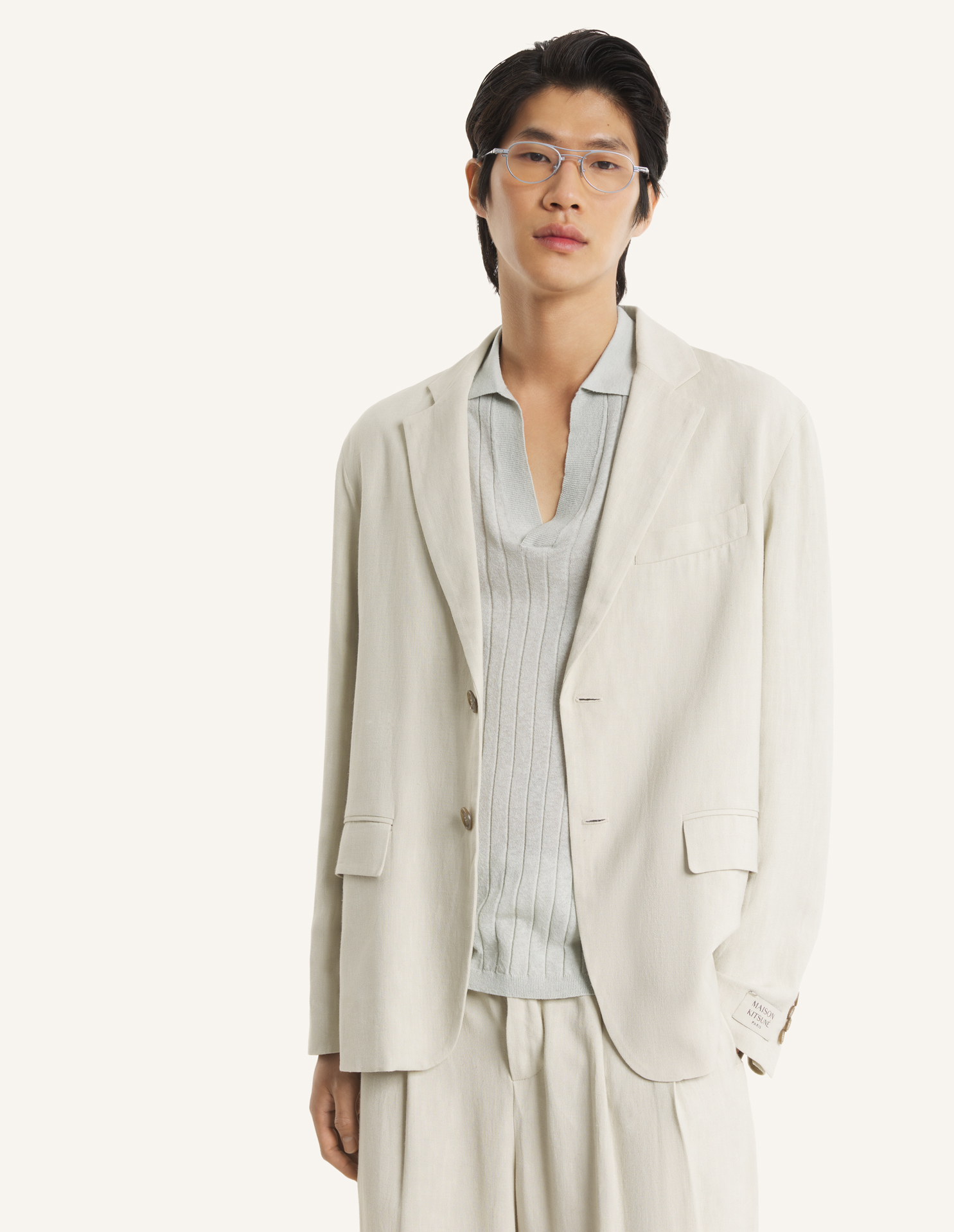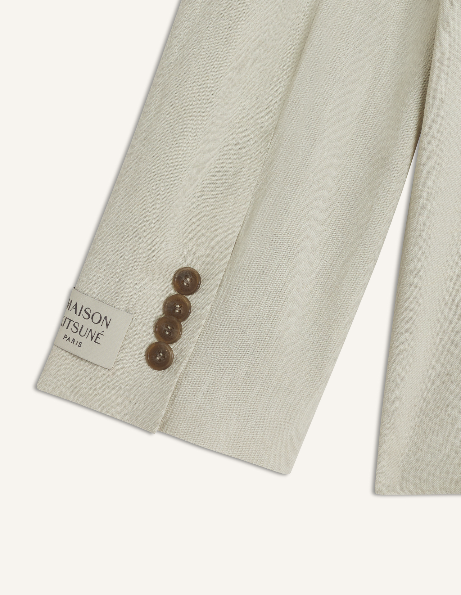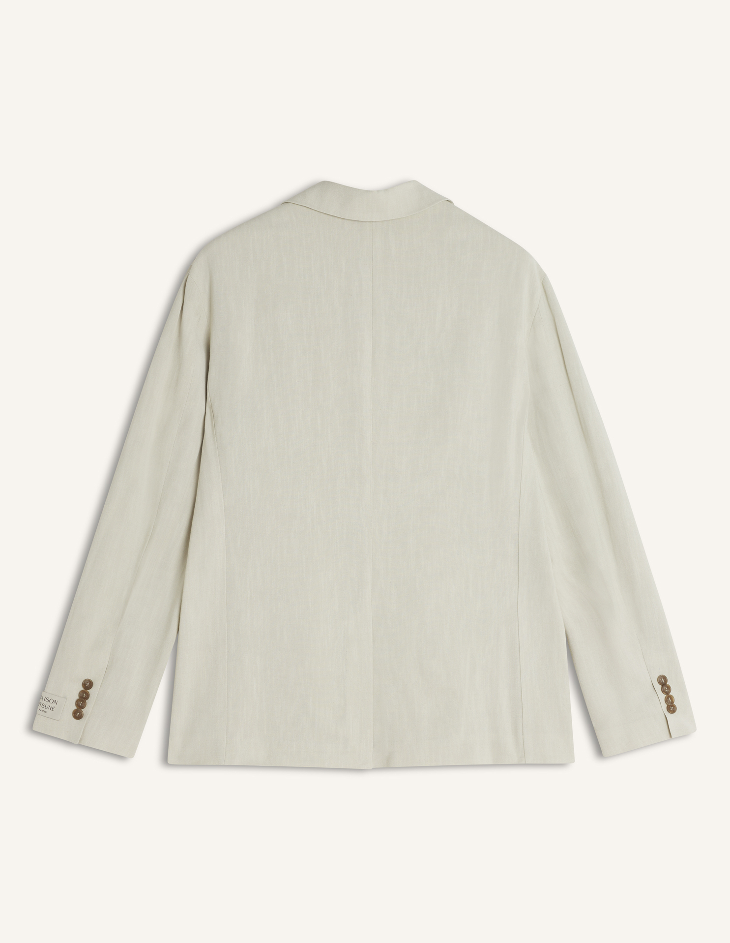 Tailored jacket in textured linen blend. Tailored fit with Maison Kitsuné Paris woven label on the sleeve.