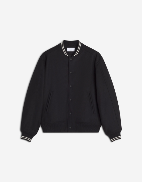 Wool and cashmere melton varsity jacket. Comfort fit with Maison Kitsuné bouclé patch at the back.