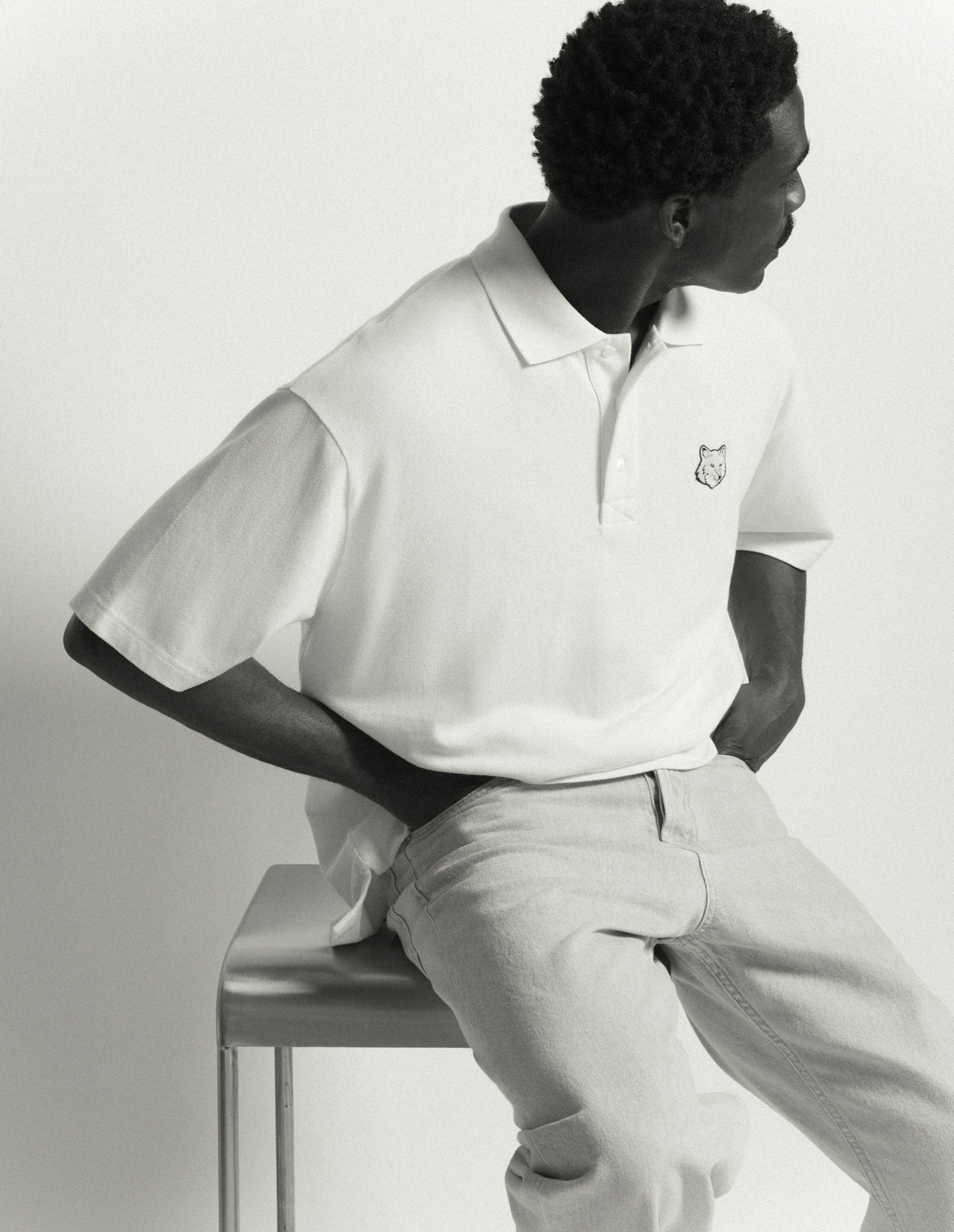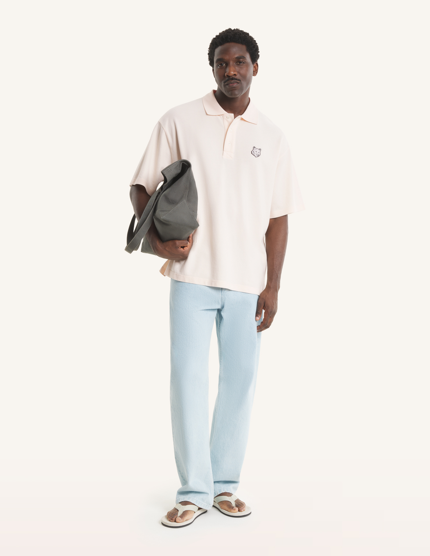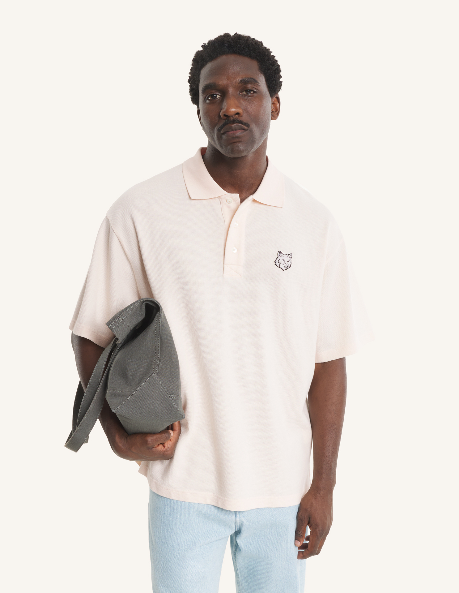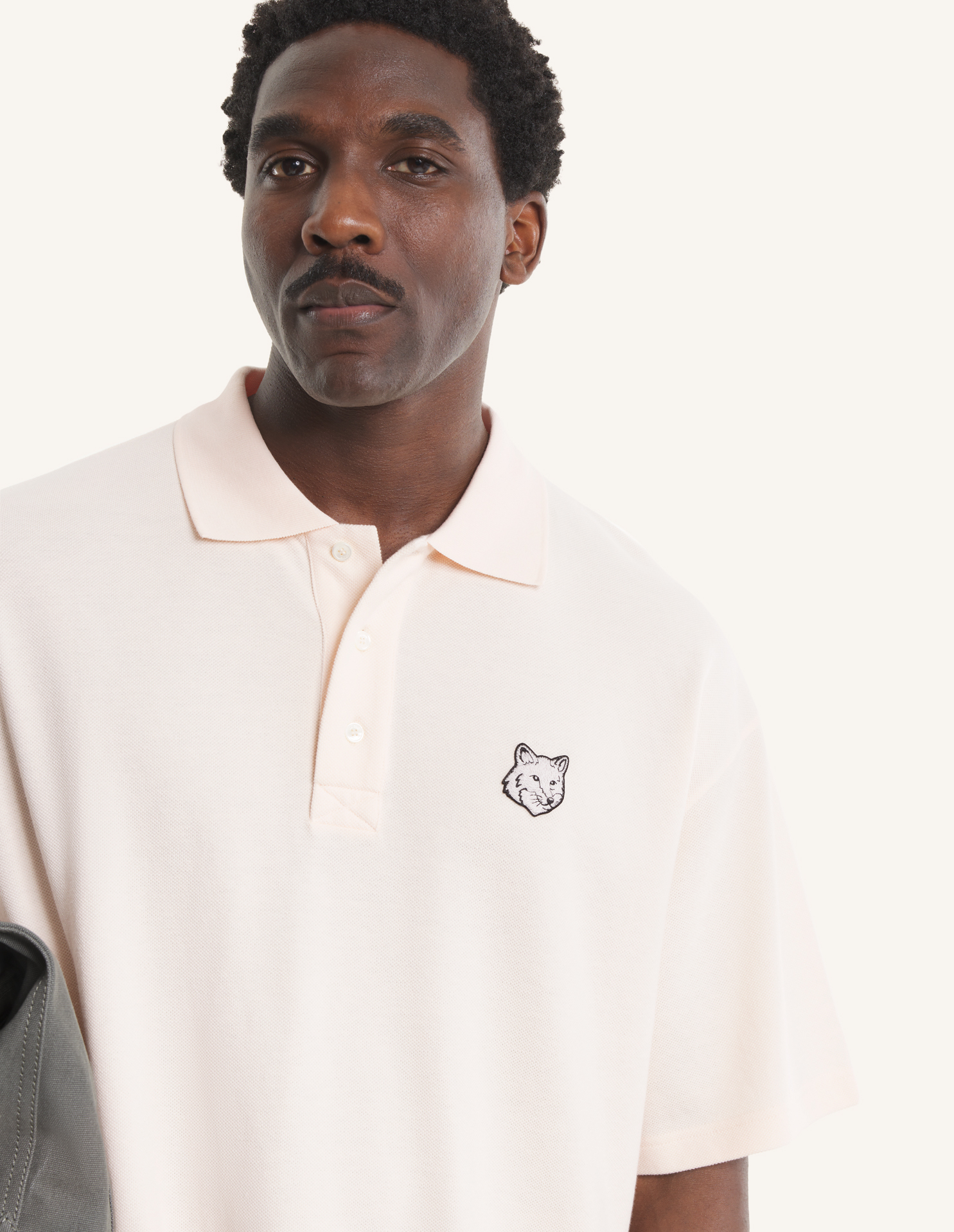 Oversize polo in soft cotton pique. Fox Head embroidered patch on the chest.