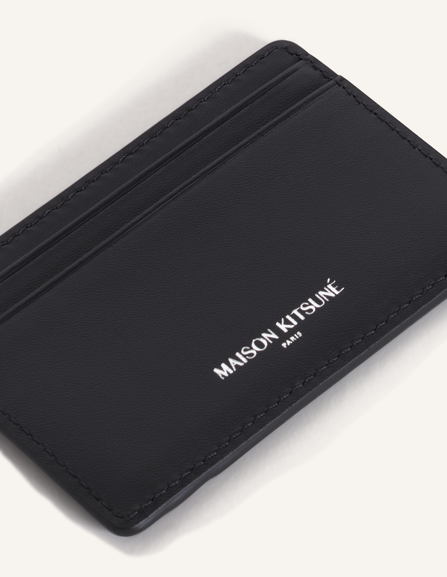Cardholder in soft grained leather. Maison Kitsuné Paris embossed on the back.